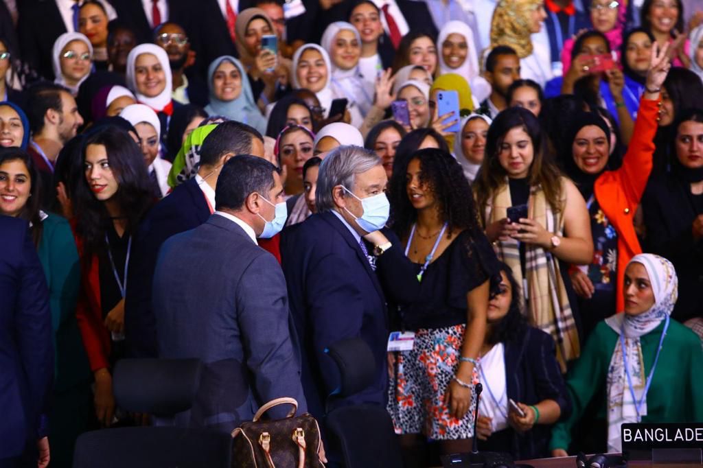 حرص الأمين العام لمنظمة الأمم المتحدة ؛ أنطونيو جوتيريش، على التقاط صورة تذكارية جماعية للشباب المتطوع والمنُظم لفعاليات قمة المناخ بشرم الشيخ، وذلك تزامنًا مع ختام المؤتمر. كما منحت سكرتارية الأمم المتحدة الشباب المُشارك في تنظيم قمة المناخ (COP27)، شهادات تقدير، تكريمًا لهم على دورهم الفاعل في نجاح المؤتمر في نسخته الحالية بشرم الشيخ والتي تعد من أكثر المؤتمرات نجاحًا بفضل جهود الشباب المتطوع.