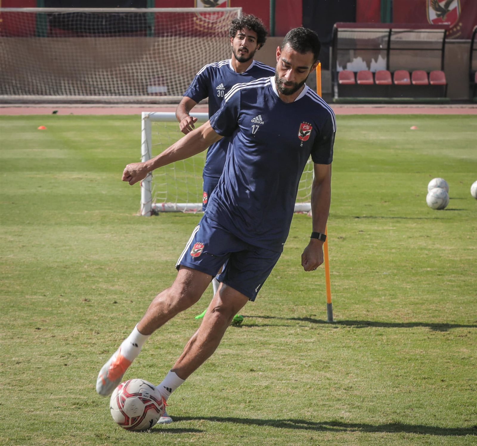 وعرضت الصفحة الرسمية للنادي الأهلي عدد من الصور لمران الفريق الجماعي والذي واصل خلاله محمود متولي لاعب الفريق، برنامجه التأهيلي.
