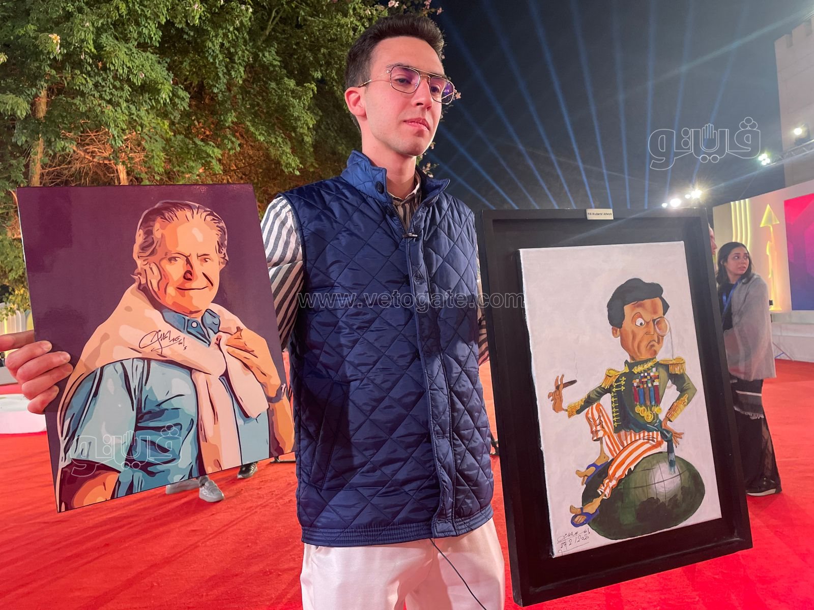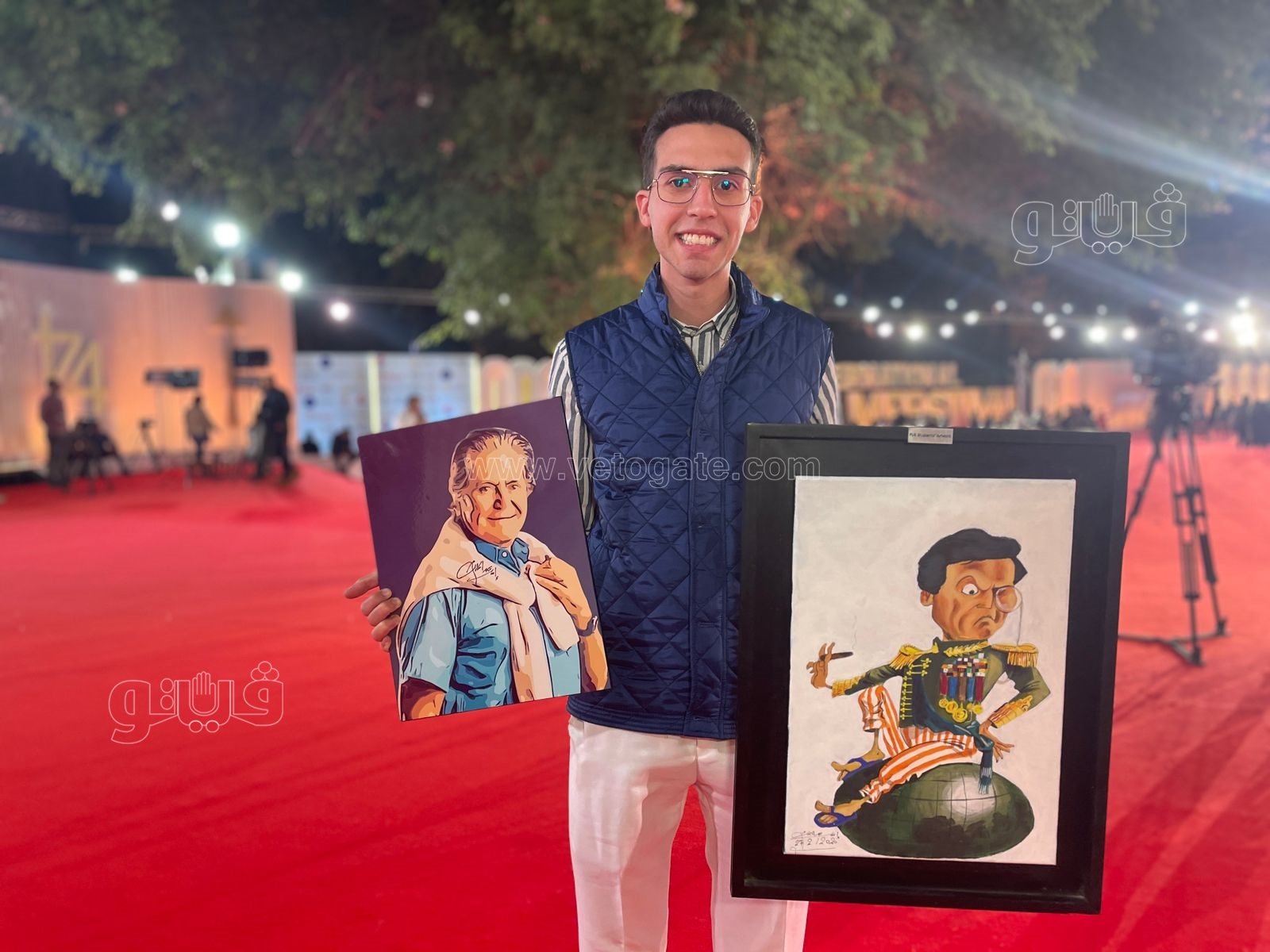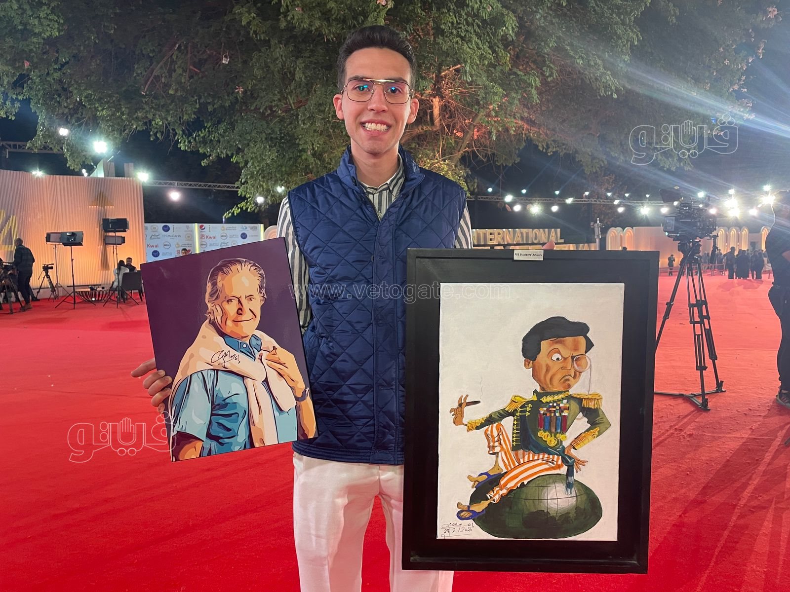 وظهر إسلام عبد الملك علي السجادة الحمراء وهو رافع صورتين للفنان عادل إمام والفنان حسين فهمي، وقال " إسلام" في تصريح خاص لفيتو أنه رسم تلك الرسومات تعبيرا لحبه الشديد للفنانين عادل إمام وحسين فهمي، وأكد إسلام أن عادل إمام قدوة للجميع على مستوى التمثيل والإخراج، وأشار إلى أن الفنان حسين فهمي ممثل وشخصية “كبيرة” وأن رئاسته لمهرجان القاهرة السينمائي مرة أخرى أمر مشرف.