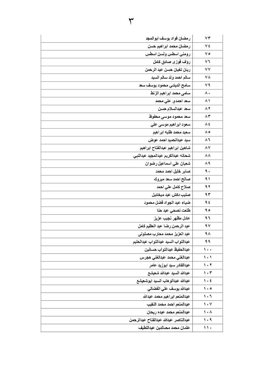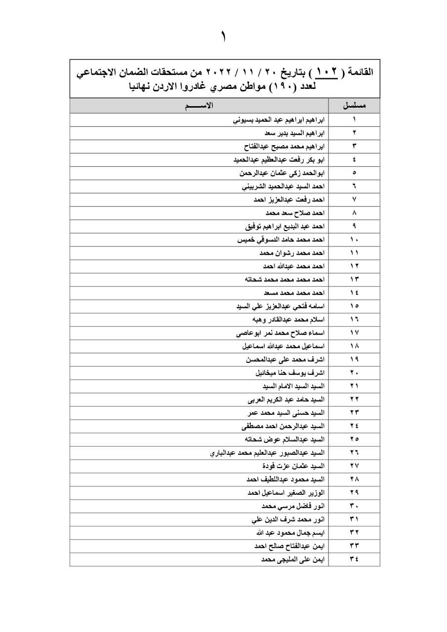 أسماء القائمة رقم 102 من مستحقات العمالة المصرية المغادرة الأردن