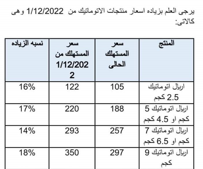 وتتراوح نسب الزيادة فى الأسعار بين 14% إلى 18%.