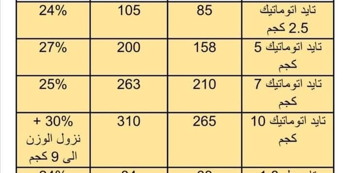 وتراوحت نسب الزيادة بين 24% الى 30% على اوزان “ 2.5 كجم - 5- كجم - 7كجم - 10كجم ”.