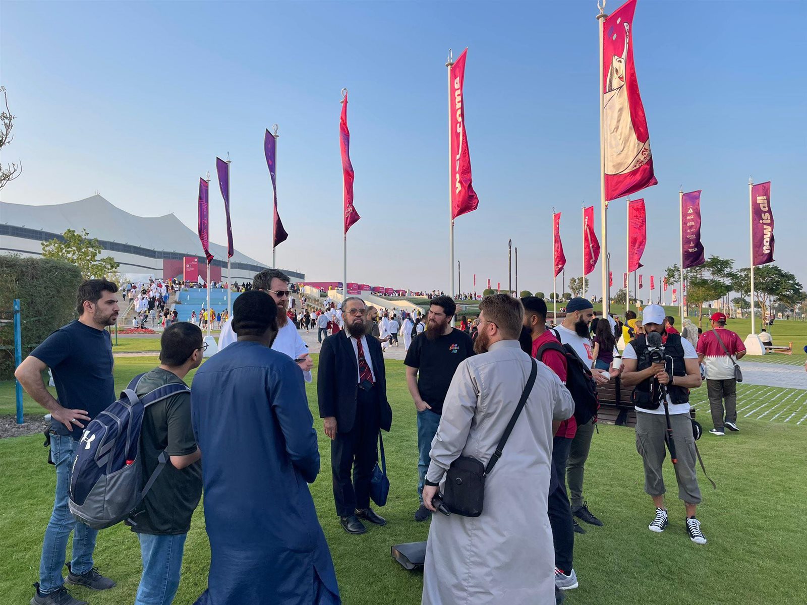 أظهرت عدد من الصور انتشار دعاة دينيين من جنسيات مختلفة يتقدمهم الداعية الأمريكي عبدالرحيم المكارثي يحاورون الشباب أمام إستاد البيت في قطر قبيل المباراة الافتتاحية لكأس العالم “قطر 2022”.