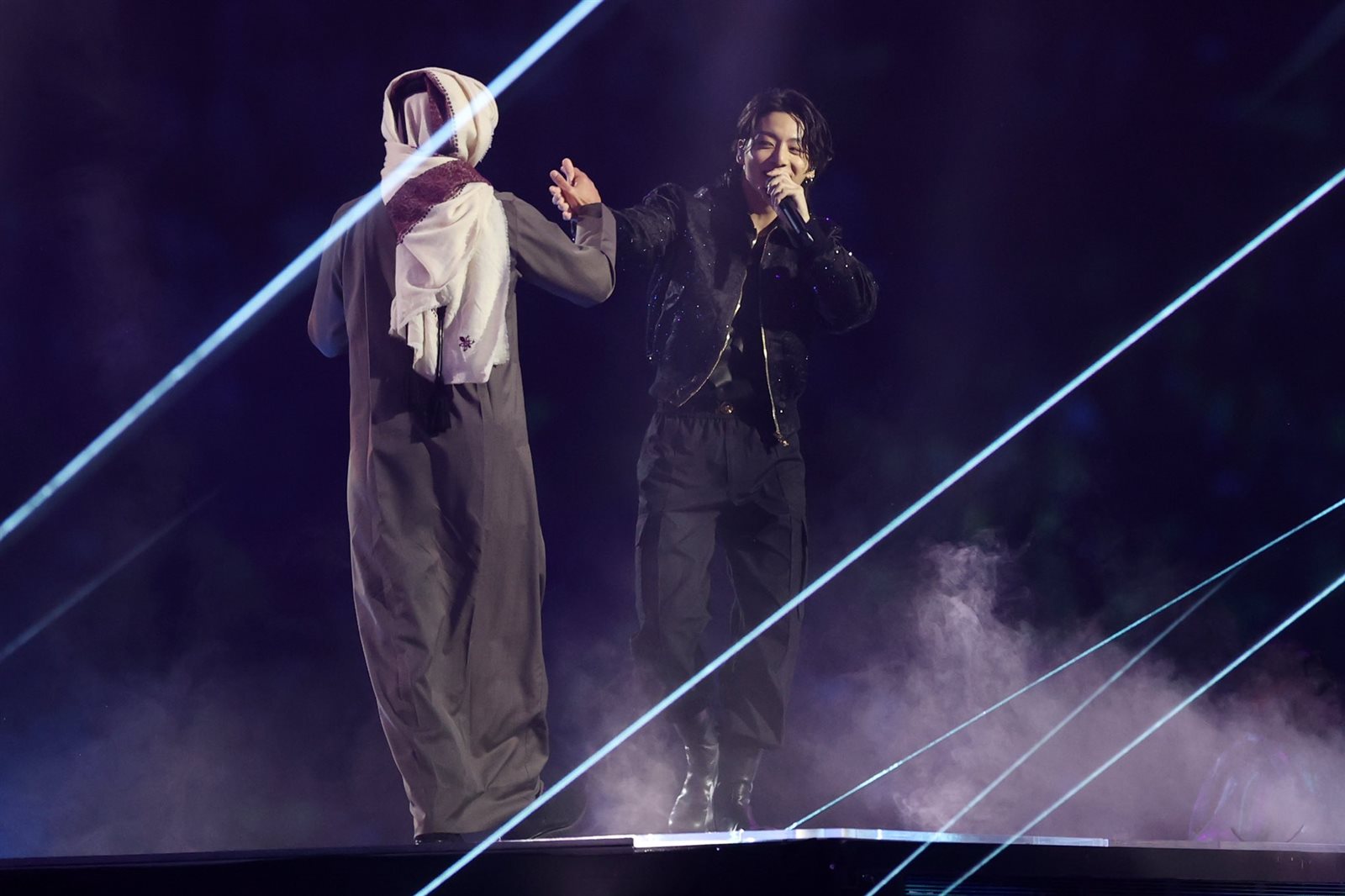 وشارك المغني الخليجي فهد الكبيسي الغناء، مع المغني الكوري جونغكوك، بمقطع باللغة العربية، خلال فاعليات حفل الافتتاح.