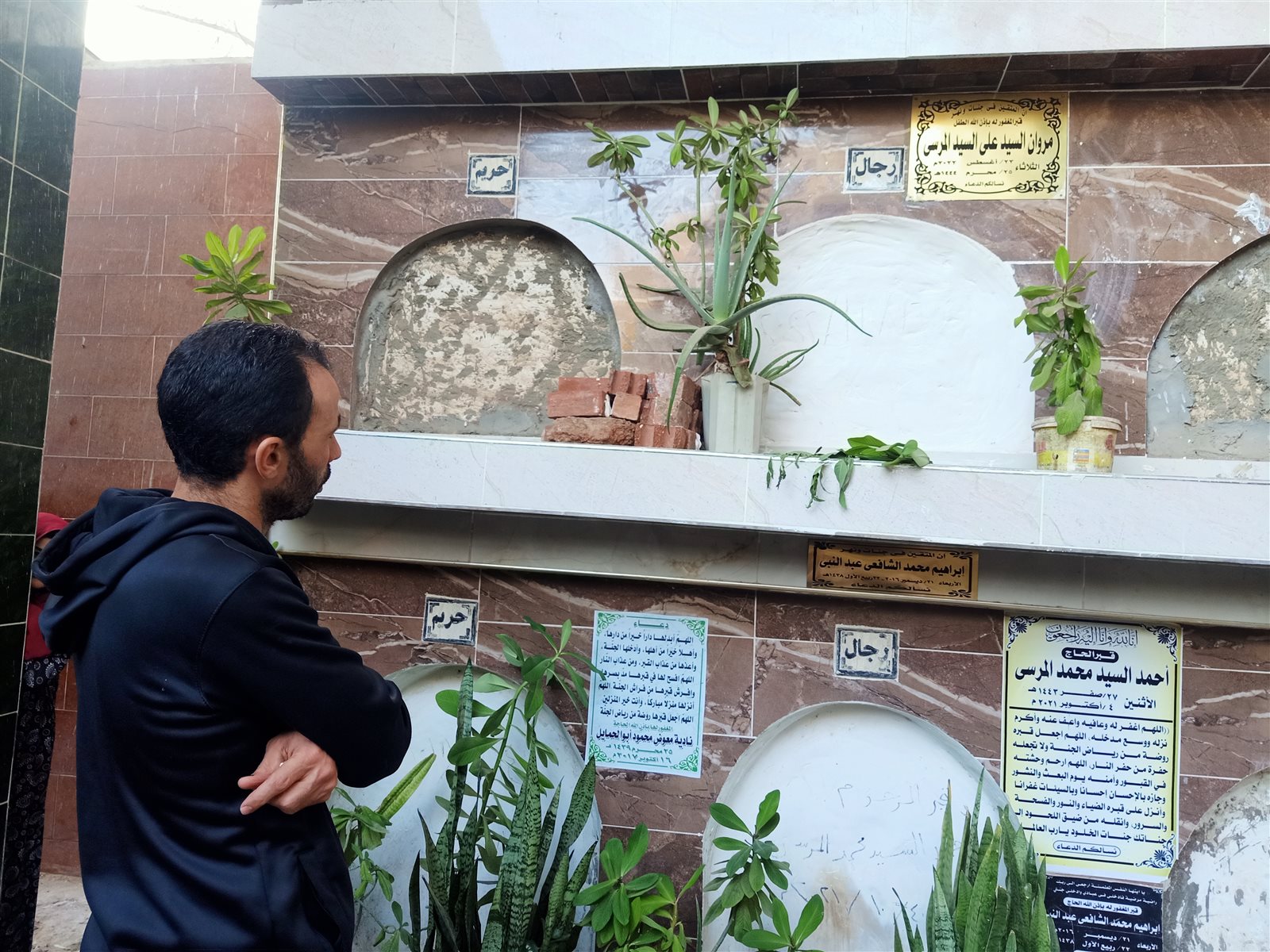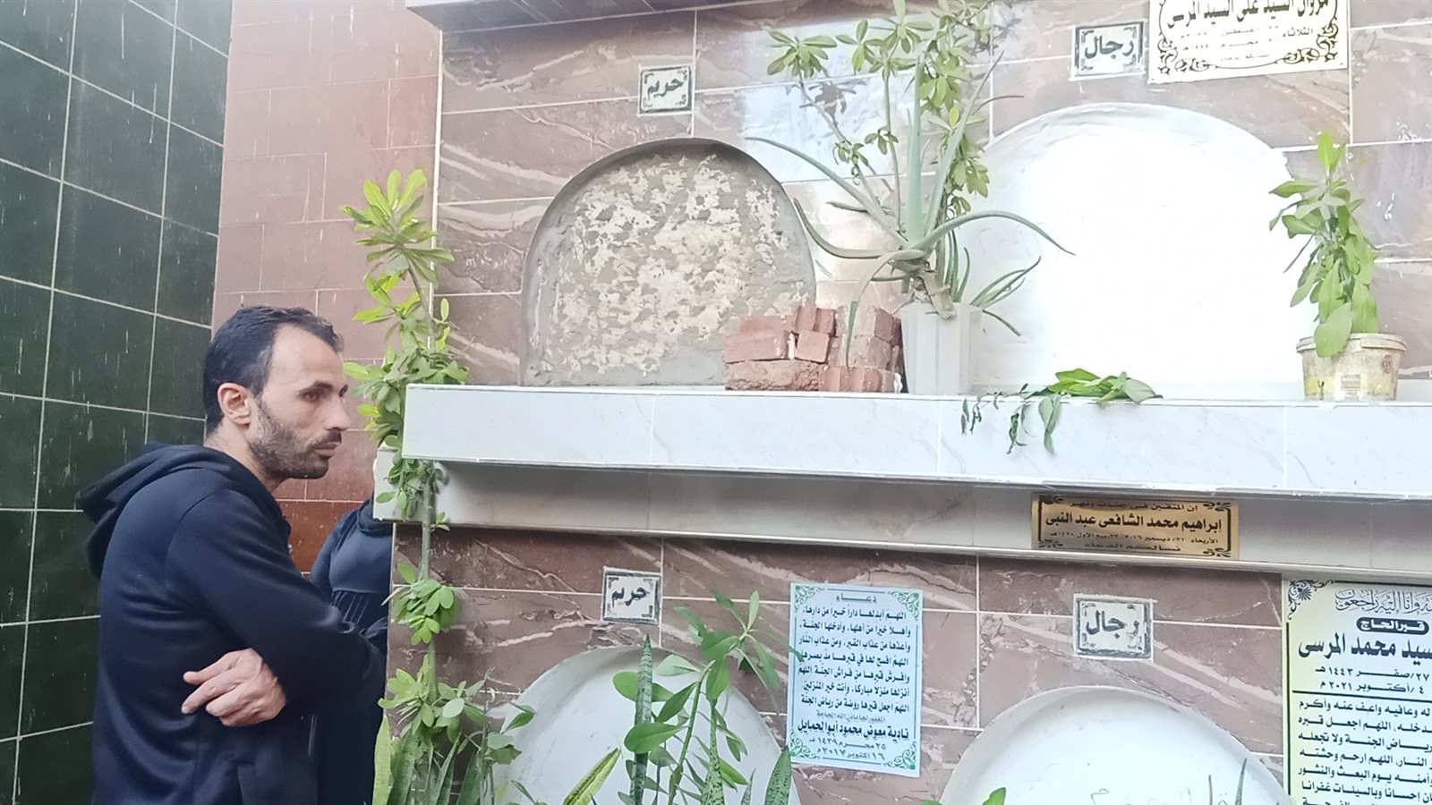 ورصدت فيتو وقوف والد الأطفال يقرأ الفاتحة وتنهمر منه الدموع علي المقابر، ويحرص الأهالي على مواساته وتقديم واجب العزاء.