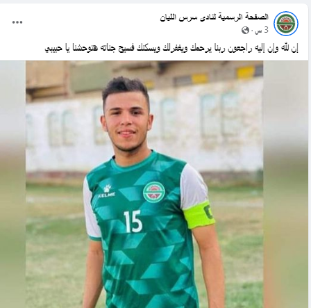 وفاة أحمد وائل الخولي لاعب سرس الليان متأثرا بإصابته بحادث سير