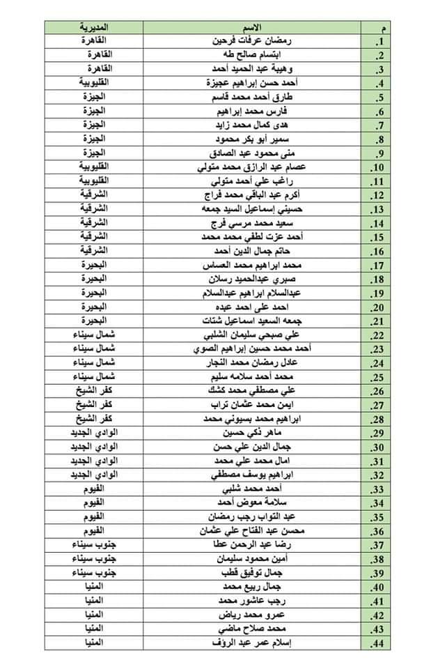 ونبهت الأوقاف على مديري المديريات تسهيل المأمورية للمتدربين، مع اصطحاب بطاقة الرقم القومي، وهم على النحو التالي: