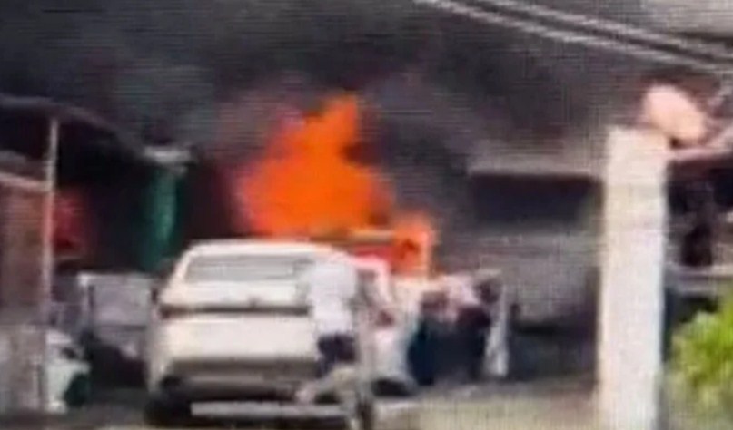 وأظهرت صور على وسائل التواصل الاجتماعي دخانا أسود يتصاعد من سيارة مشتعلة داخل مجمع منخفض الارتفاع وحولت الشرطة حركة المرور بعيدا.