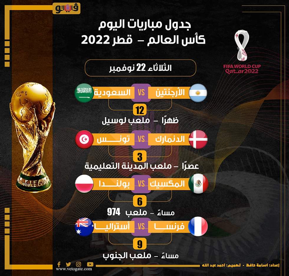 مواعيد مباريات اليوم في كأس العالم الثلاثاء 22/نوفمبر/2022 - 12:57 م 11/22/2022 12:57:57 PM مواعيد مباريات اليوم في كأس العالم شارك طباعة 18 حجم الخط شارك طباعة