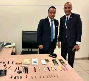 وبالعرض على أحمد حسن الحكش مدير الإدارة بالإنابة قام بتكليف سامي نبيل سامي تحت إشراف عمرو عطية الدسوقي بتفتيش حقائب الراكب و تفتيشه ذاتيا فتبين وجود عدد من أجهزة السجائر الإلكترونية والتانكات بداخلها زيت المارجوانا المخدر وعدد من السجائر الملفوفة بداخلها نبات أخضر اللون يشتبه أن يكون من جوهر المارجوانا المخدر وعدد من أكياس الحلوى بداخلها مادة يشتبه أن تكون لمادة thc المخدرة والجميع مخبأ بين طيات الملابس بحقائبه ووجود علبة سجائر بداخلها عدد من السجائر الملفوفة بداخلها نبات أخضر اللون يشتبه أن يكون من جوهر المارجوانا المخدر داخل الجيب الصغير في الجاكت الذي يرتديه.