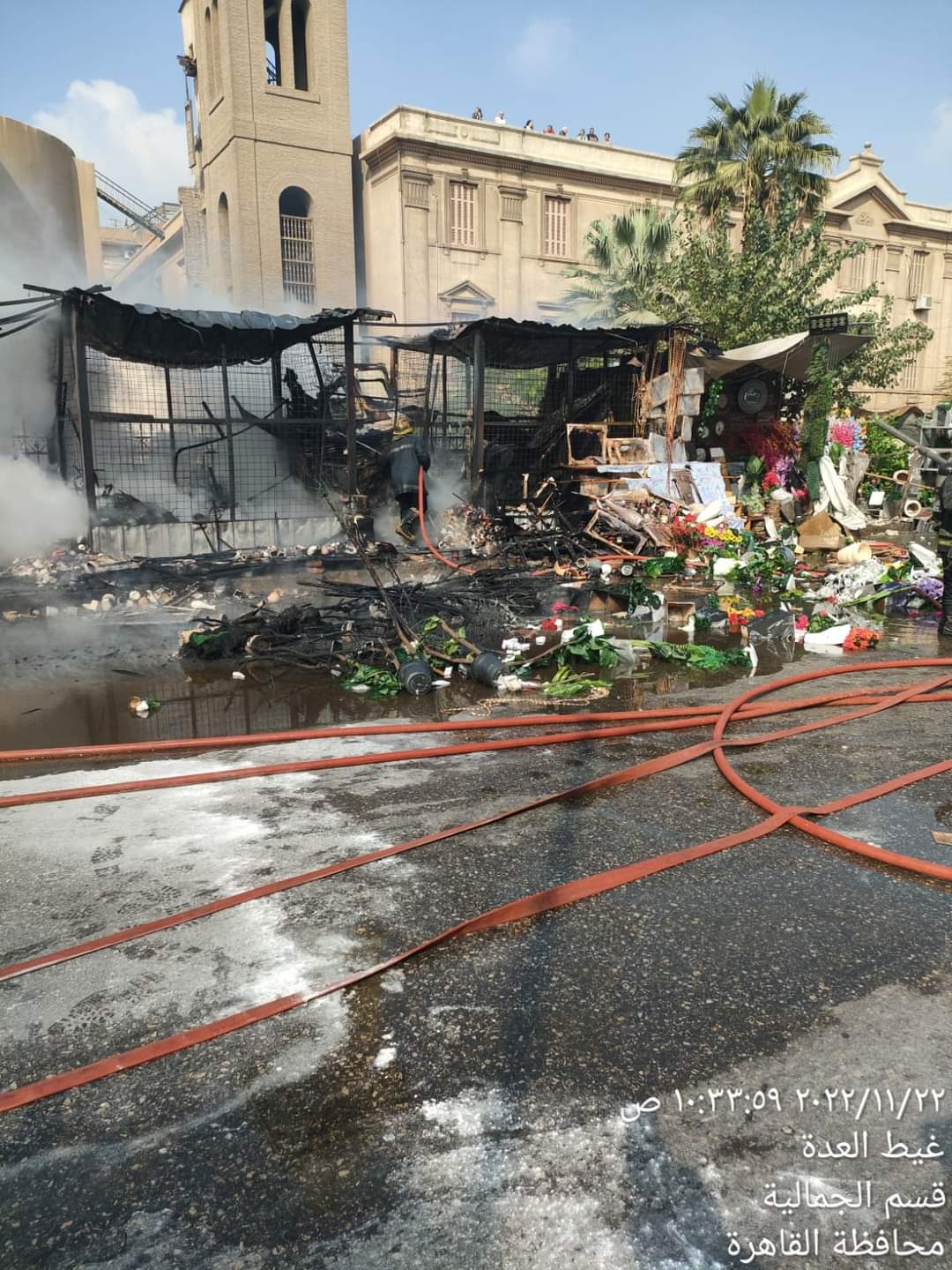 الصور الأولى لحريق أكشاك الزهور في الموسكي