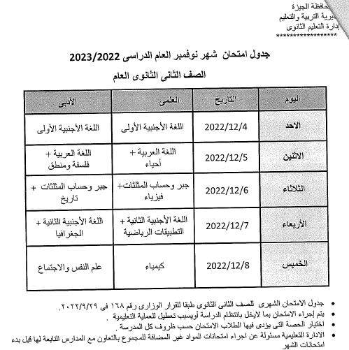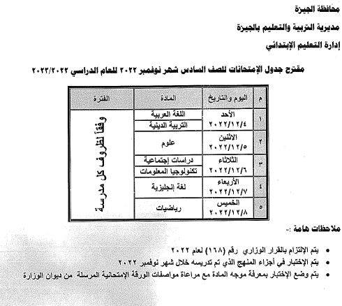 أعلنت مديرية التربية والتعليم بمحافظة الجيزة جداول امتحانات شهر نوفمبر 2022 لجميع طلاب مدارس تعليم الجيزة " ابتدائى – إعدادى – ثانوى "
