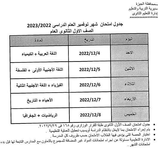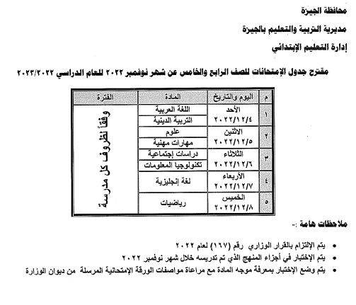 تعليم الجيزة تعلن جداول امتحانات شهر نوفمبر 2022 لجميع طلاب المدارس