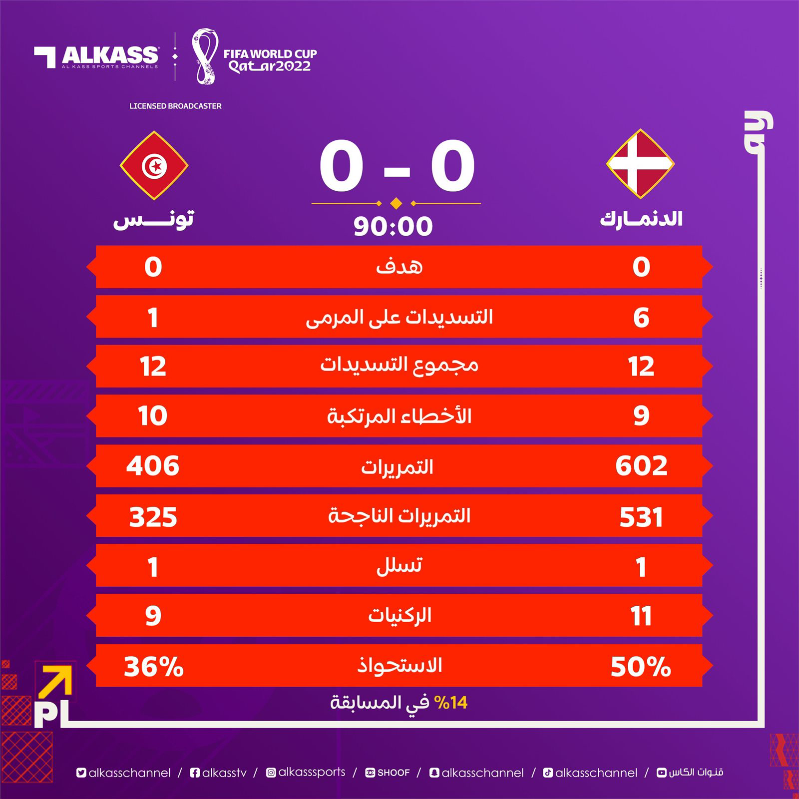 وانتهت مباراة تونس والدنمارك بالتعادل السلبي، في المباراة التي أقيمت اليوم الثلاثاء، على ملعب المدينة التعليمية، ضمن الجولة الأولى من المجموعة الرابعة ببطولة كأس العالم 2022.