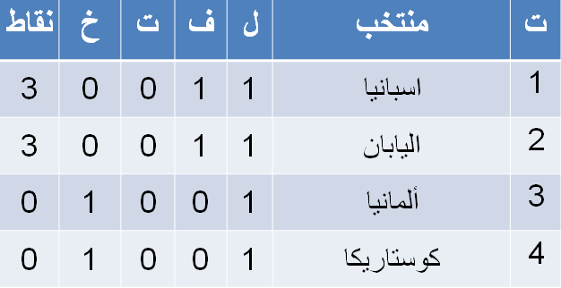 ويتواجد منتخب اليابان في الوصافة بنفس الرصيد، بعد فوزه المثير علي منتخب ألمانيا 2-1 في افتتاح مباريات المجموعة الخامسة بالمونديال.