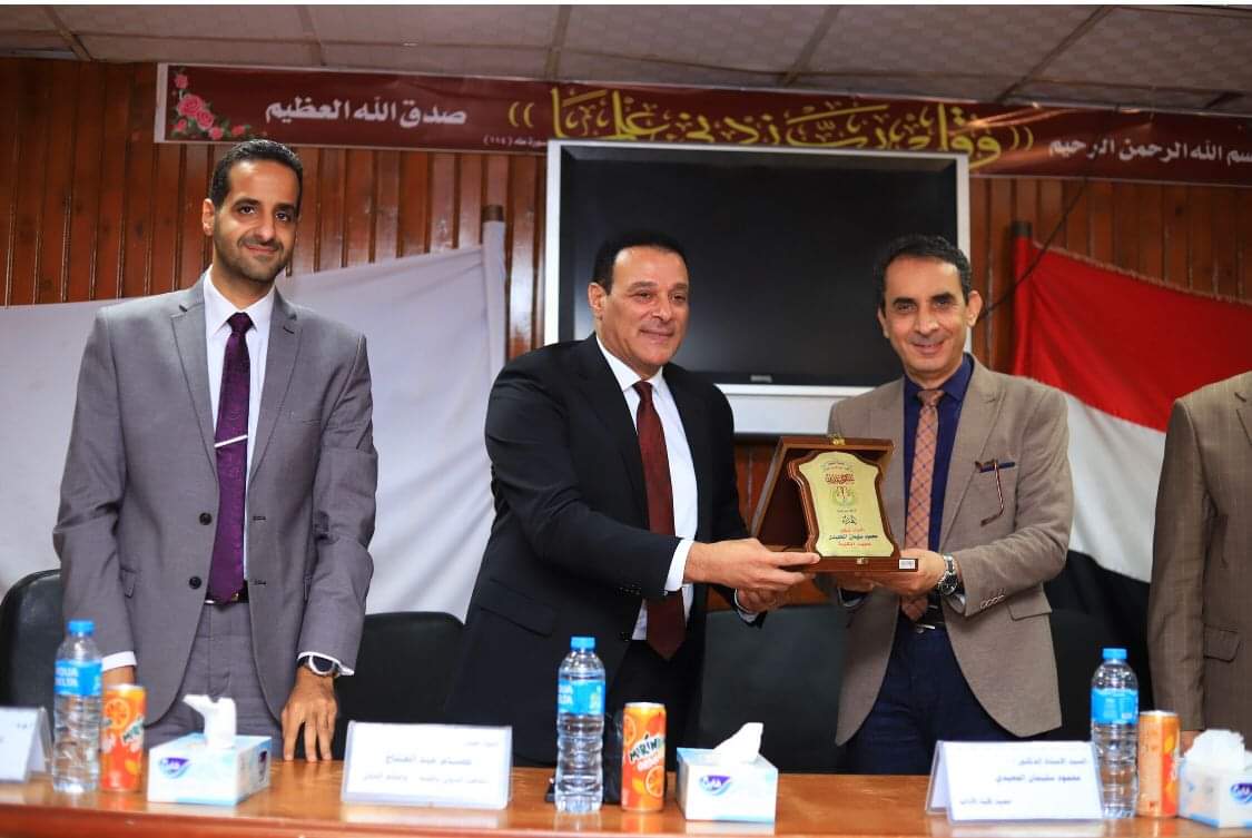 وفي ختام الندوة أهدى الدكتور محمود الجعيدي، عميد الكلية الكابتن عصام عبد الفتاح، المحاضر الدولي بالفيفا، درع الكلية، تقديرًا لدوره الفعال في نشر الوعي الإعلامي بين الشباب والطلاب بالكلية متمنيًا له دوام التوفيق.