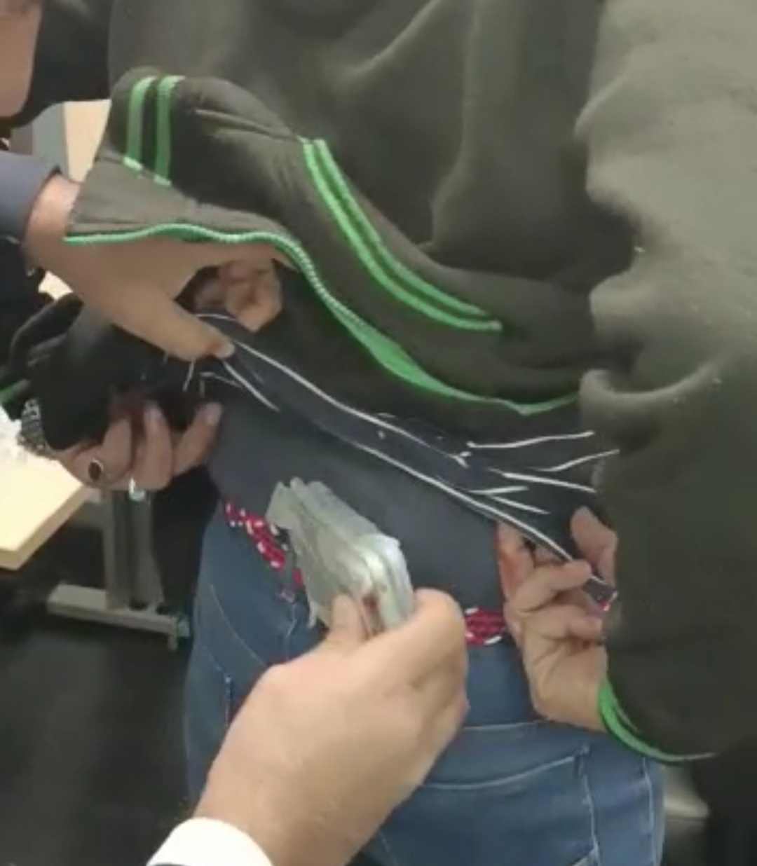 وكلف فتحي فوزي مدير الإدارة بالإنابة كل من مصطفى بحر مأمور الجمرك ومحمد يوسف بتفتيش الراكب ذاتيًّا مما أسفر عن ضبط ١٥ تليفونًا محمولًا أخفاهم الراكب علي بطنه وظهره و٢ تليفون محمول اخفاهم الراكب في جيب الجاكيت الذي يرتديه.