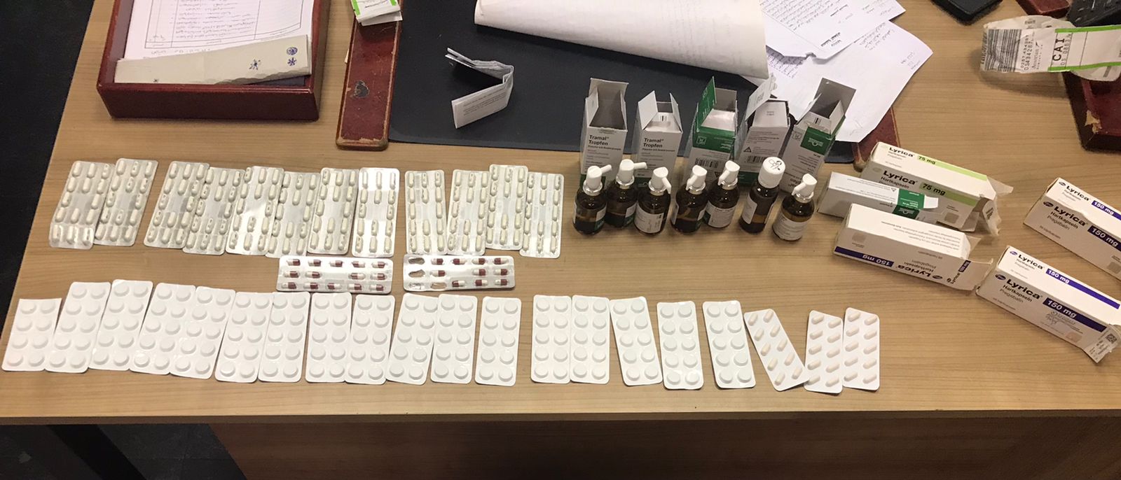 كلف سامح زاهر مدير الحركة المشرف على صالة الوصول بمبني الركاب رقم ٣، أحمد إبراهيم عمر مأمور الجمرك بتفتيش حقائب الراكب يدويا مما أسفر عن ضبط ١٧ شريطًا لعقار الترامادول المخدر تركيز ١٥٠ ملجم باجمالي ١٦٨ قرصًا و٣ شرائط لنفس العقار تركيز ٥٠ ملجم بإجمالي ٣٠ قرصًا و١٢ شريطًا لعقار Lyrica المخدر تركيز ١٥٠ ملجم بإجمالي ١٦٨ قرصًا و٢ شريط لنفس العقار السابق تركيز ٧٥ ملجم بإجمالي ٢٤ قرصًا و٦ زجاجات بداخلهم سائل عقار ترامال المخدر تركيز ٣٠ ملجم وزجاجة بها سائل لعقار الترامادول المخدر تركيز ١٠٠ ملجم.