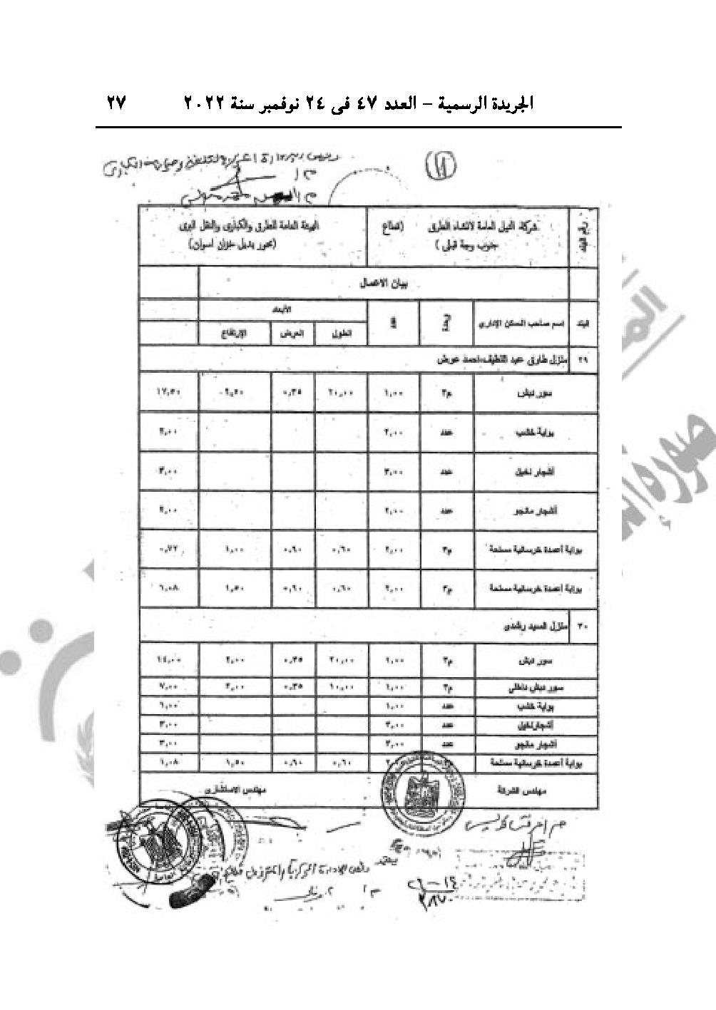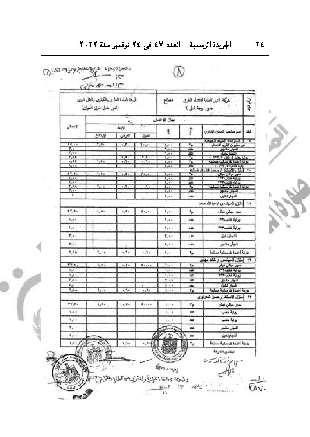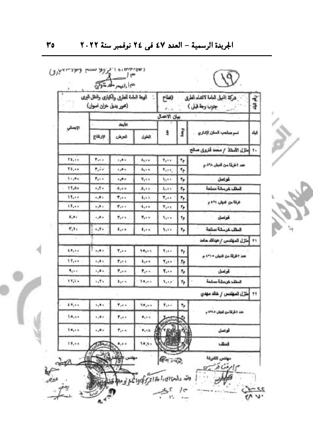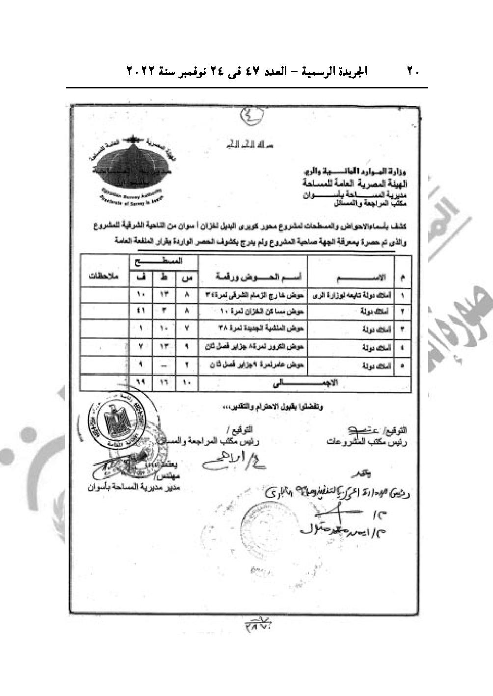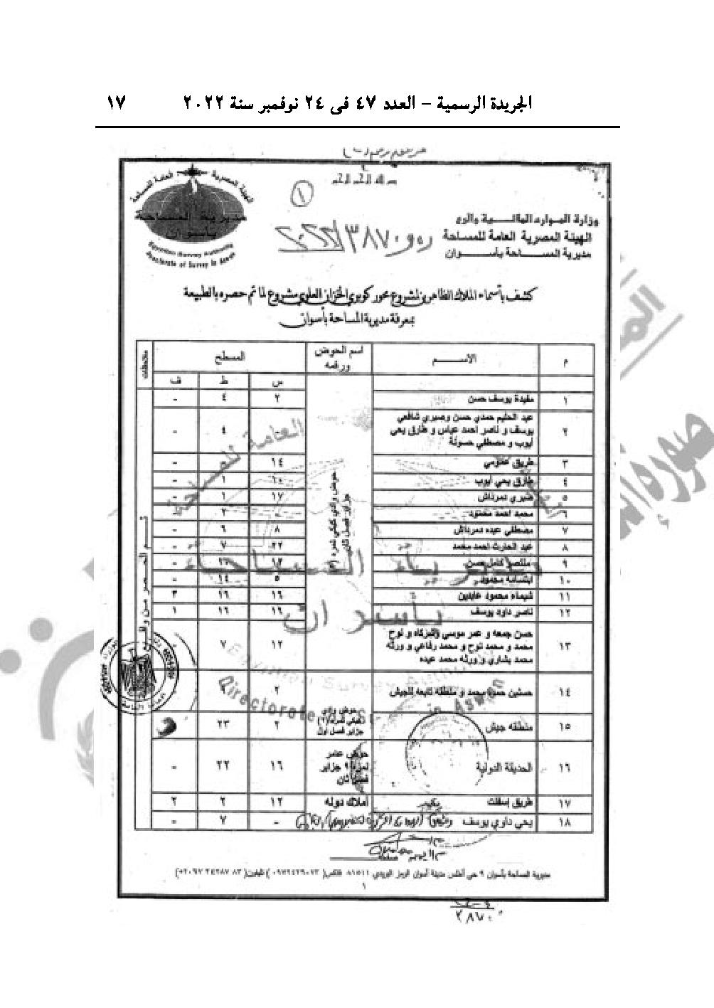-والقرار رقم 3872 لسنة 2022، باعتبار مشروع إنشاء كوبري أعلى مزلقان السيل بمحافظة أسوان، من أعمال المنفعة العامة.