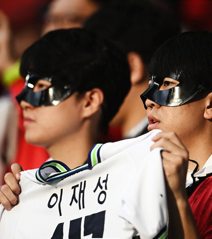 ودعمت الجماهير الكورية سون هيونج مين عن طريق ارتداء قناع واقي لتقديم الدعم للاعب في المباراة.