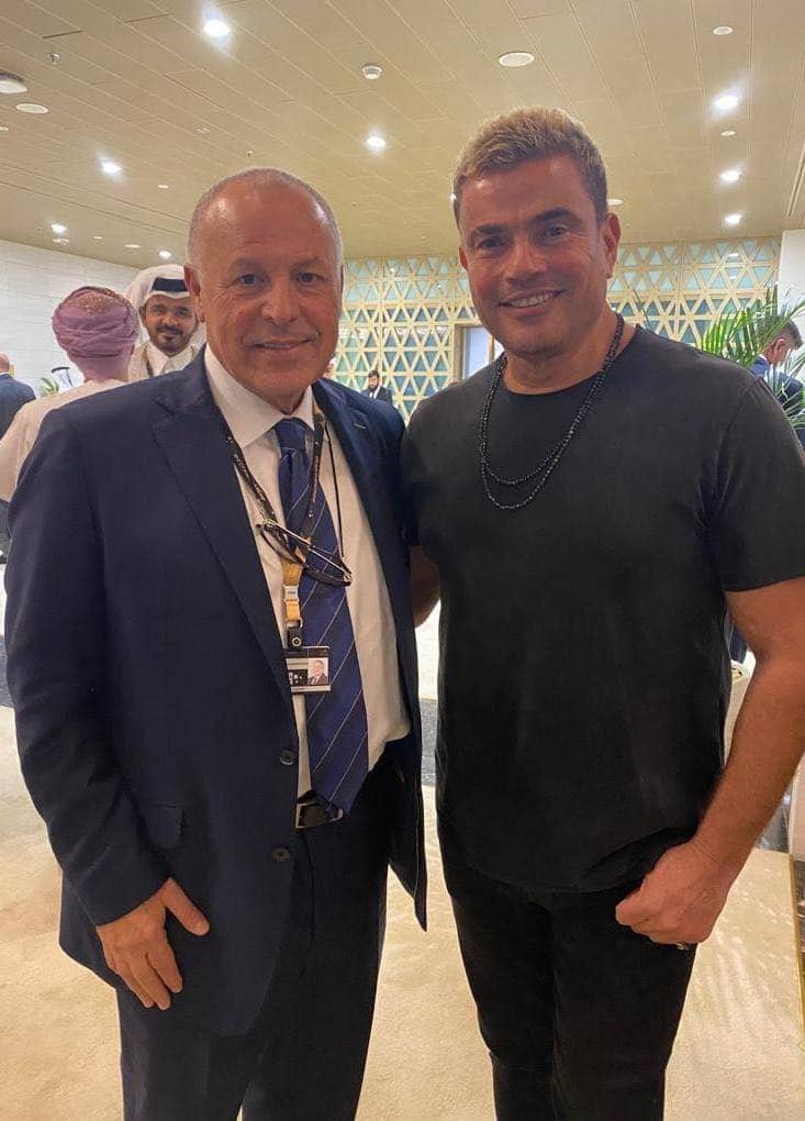 التقى النجم عمرو دياب بالمهندس هاني أبو ريدة عضو المكتب التنفيذي للاتحاد الدولي لكرة القدم “فيفا” على هامش حضورهما مباراة البرازيل وصربيا، التي تقام حاليا على ملعب لوسيل بالعاصمة الدوحة، ضمن آخر مباريات الجولة الأولى من بطولة كأس العالم.