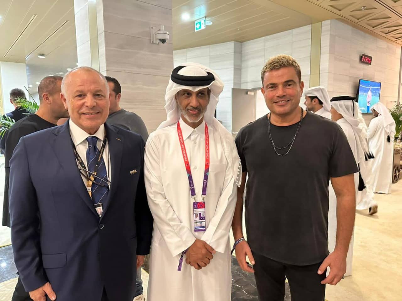 مباراة البرازيل وصربيا تجمع عمرو دياب وهاني أبو ريدة في قطر|صور