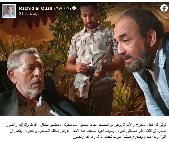 وقال الفنان المغربي رشيد الوالي في تدوينة على "فيسبوك": "توفي قبل قليل المخرج والأب الروحي لي شخصيا محمد عاطفي، بعد دخوله المستشفى بدقائق. إنا لله وإنا إليه راجعون".