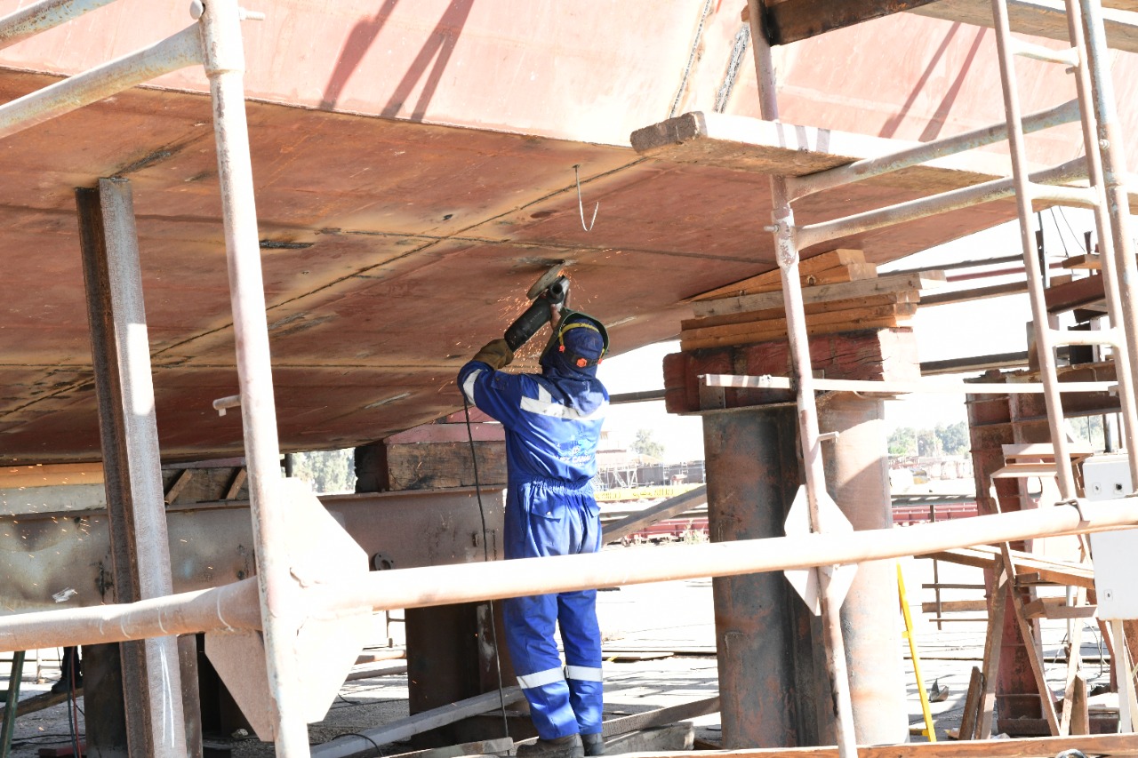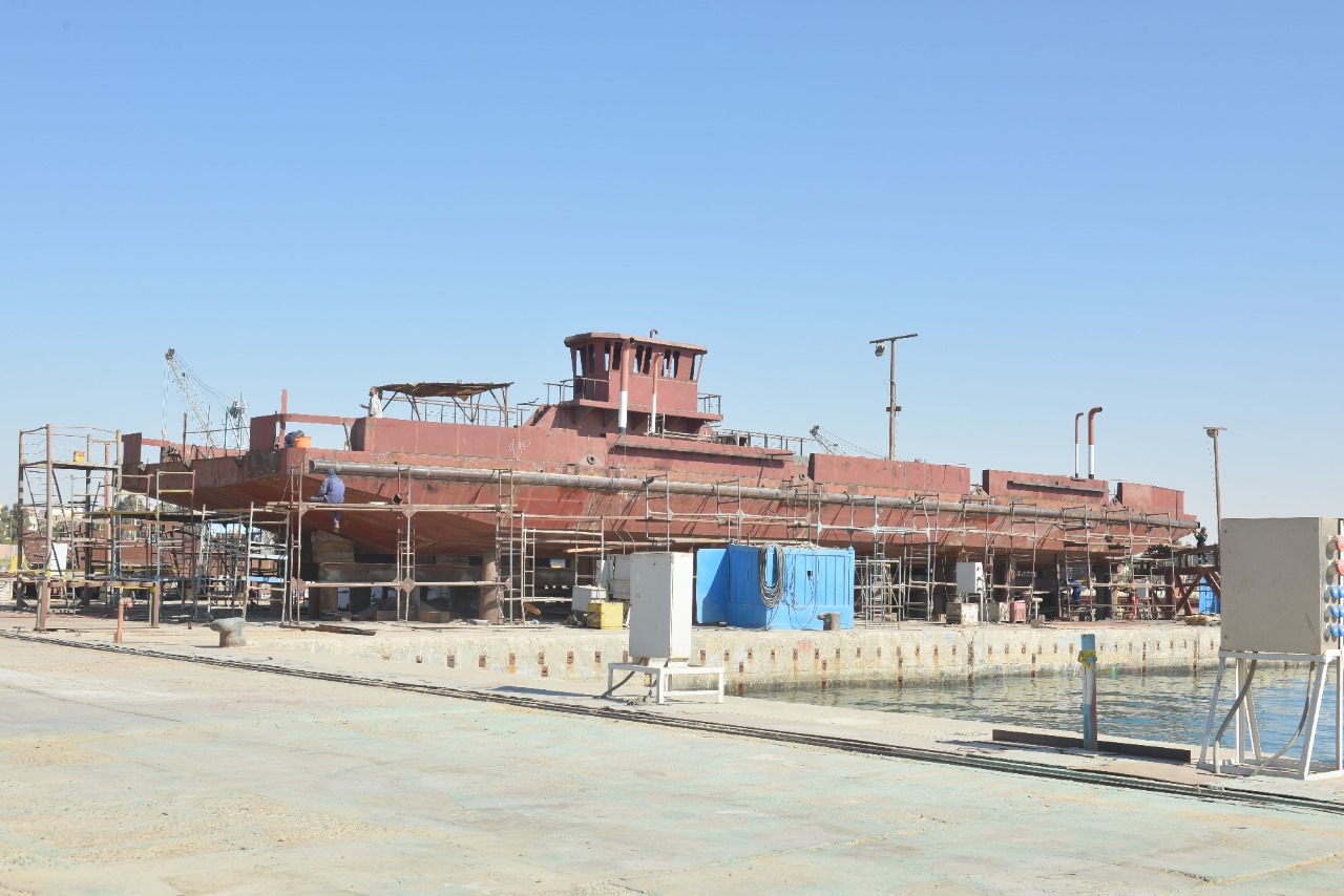 واطلع رئيس الهيئة على مستجدات أنشطة الترسانة في مجال بناء السفن حيث تفقد أعمال بناء المعدية الجديدة حمولة ٢١٠ طن بالرصيف الشمالي للترسانة والتي تماثل في مواصفاتها المعديتين الجاري بنائهما بترسانة بورسعيد البحرية لتشغيلهم فور الانتهاء من بنائهم لخدمة حركة عبور المركبات والأفراد بمحور الشط بمحافظة السويس.