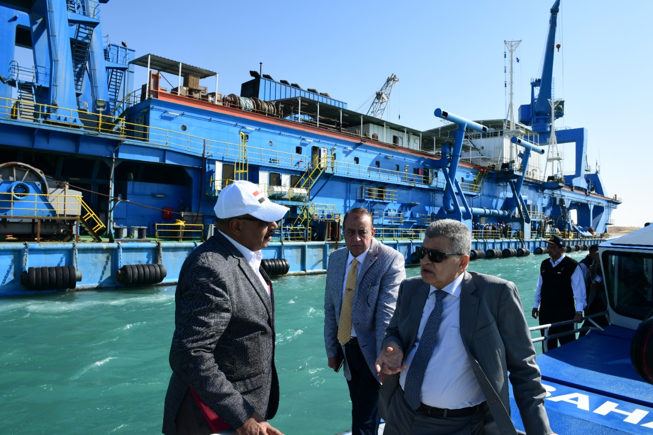 وتوجه رئيس الهيئة لتفقد مشروع تطوير القطاع الجنوبي، وحرص على تحية الأطقم العاملة على الكراكات المشاركة في المشروع بشقيه، كما تعرف على معدلات الإنجاز بموقع مشروع تطوير القطاع الجنوبي حيث تم إزالة ٣٧ مليون متر مكعب من الرمال المشبعة بالمياه حتى الآن بالمشروع.