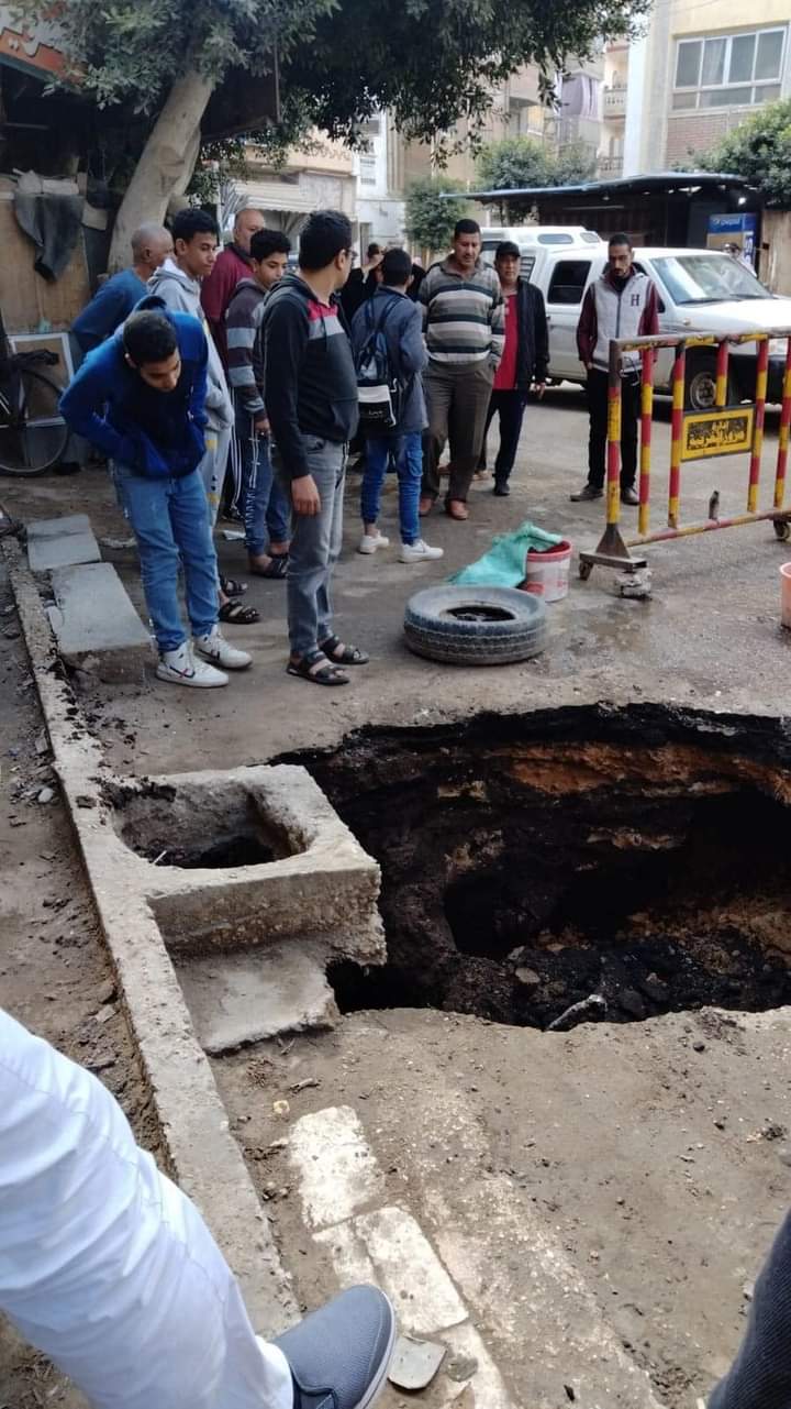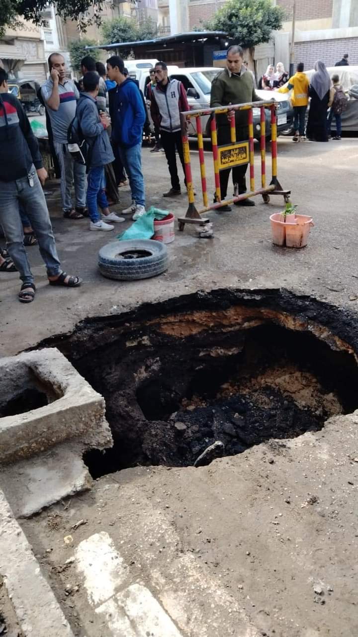 وأشارت التحريات الأولية إلى أن الهبوط الأرضي تسبب في كسر مواسير خطوط المياه وهبوط الغرفة الخاصة بتلك المواسير و إتلاف الأسفلت.