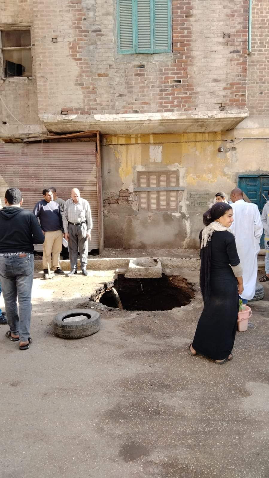 انتقلت قوات من مباحث القسم ورئيس المدينة إلى مكان الهبوط وبالمعاينة والفحص تبين وجود هبوط بالشارع المشار إليه بعمق 6 أمتار وطول 4 أمتار.