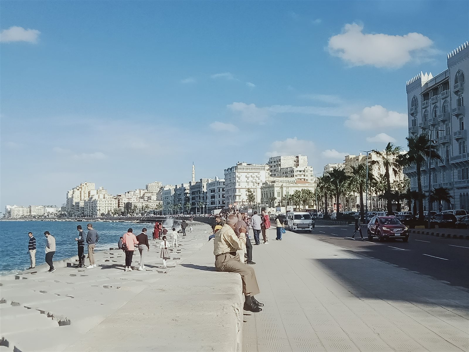 طقس مشمس وإقبال على كورنيش البحر فى الإسكندرية