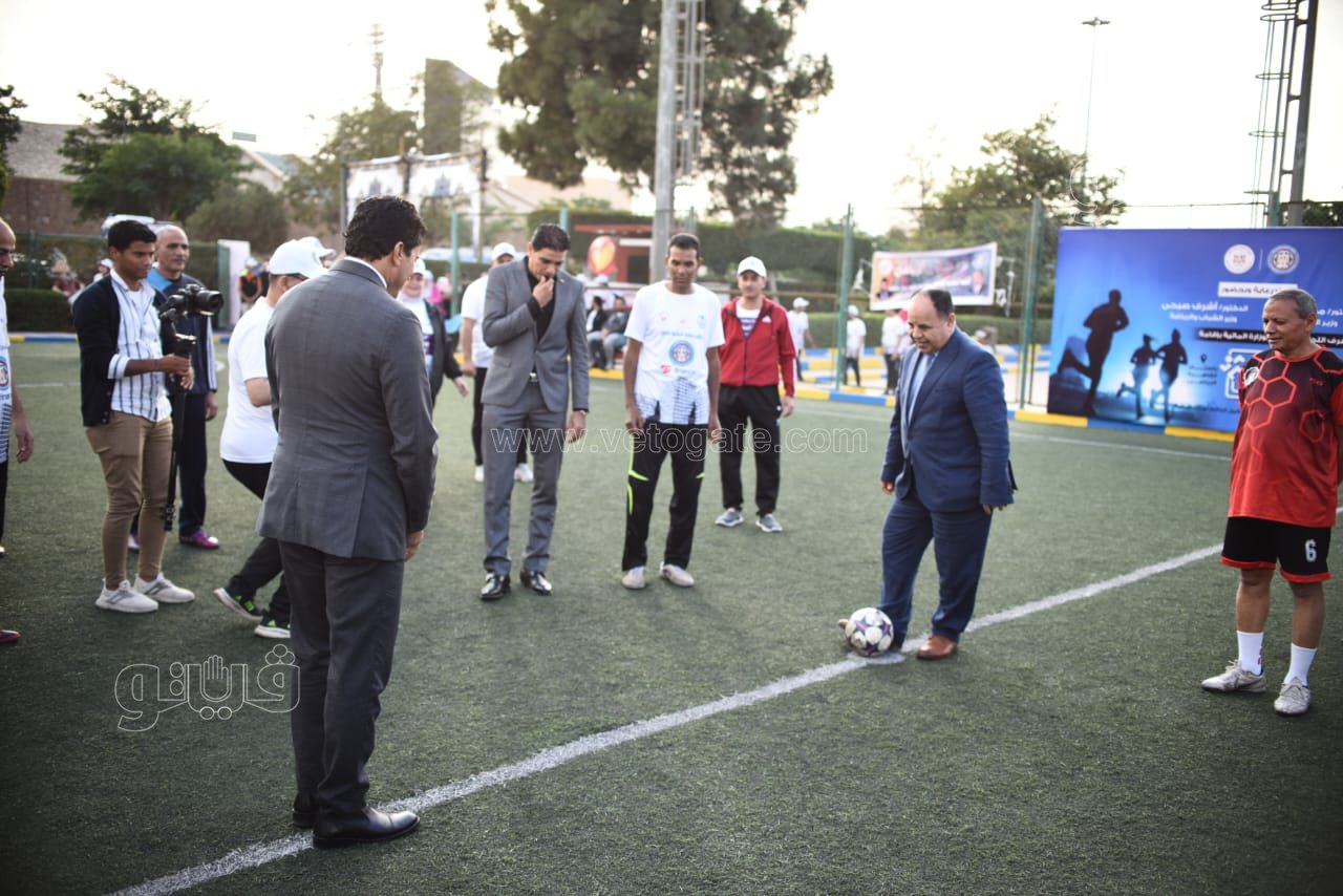 ولعب وزير الشباب والرياضة ووزير المالية، ضربة البداية لمباراة كرة القدم الاستعراضية التي أقيمت باستاد القاهرة، على هامش اليوم الرياضي لأسر الشهداء والضحايا، والتي أدارها تحكيميا الحكم الدولي إبراهيم نور الدين.