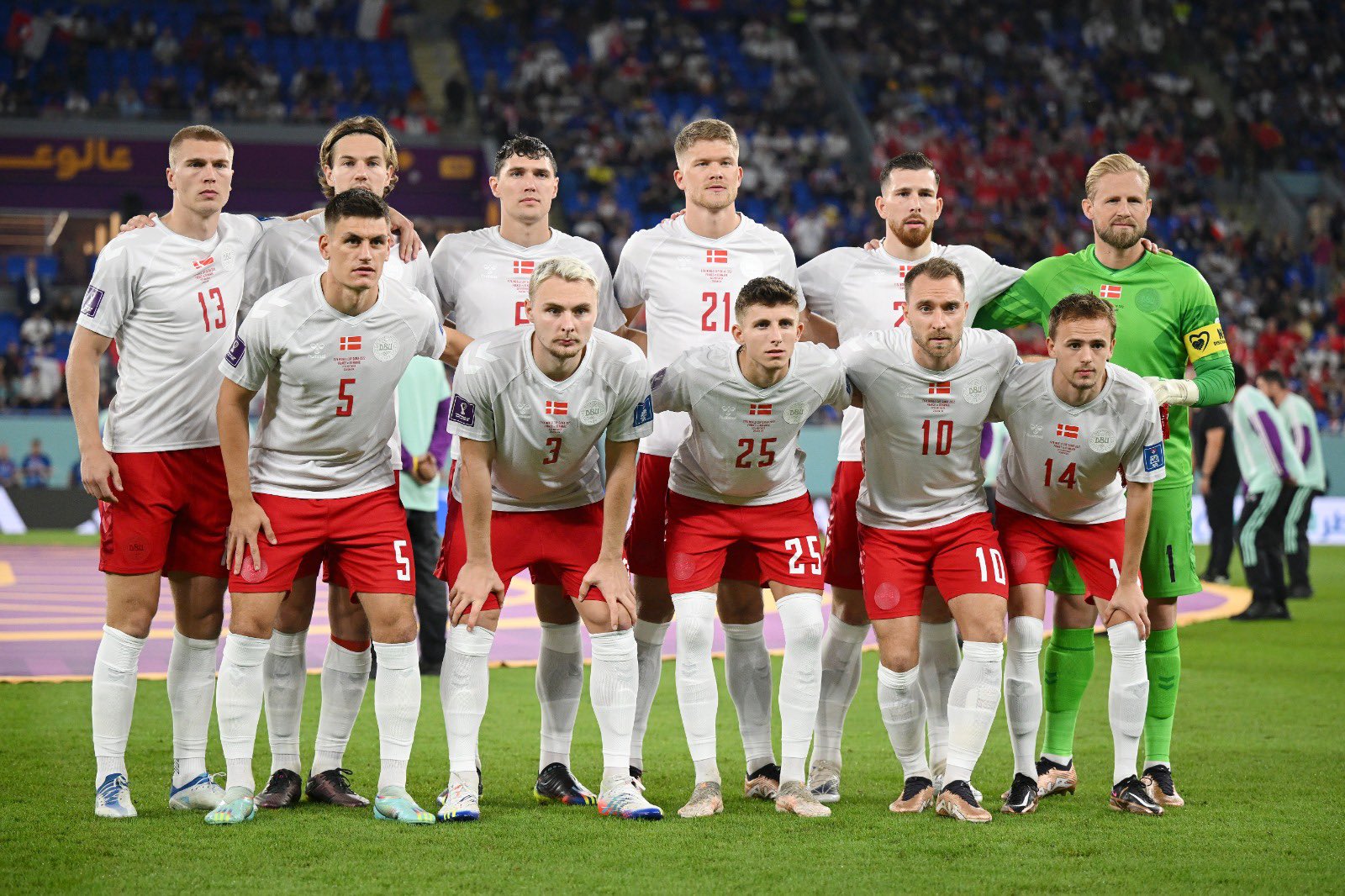 كاسبر شمايكل، يواكيم أندرسن، فيكتور نيلسون، يواكيم ماهلي، أندرياس كريستنسن، كريستيان إريكسن، راسموس كريستنسن، مايكل دامسجارد، أندرياس كورنيليوس، بيير إيميل هويبيرج، جيسبر ليندستروم.