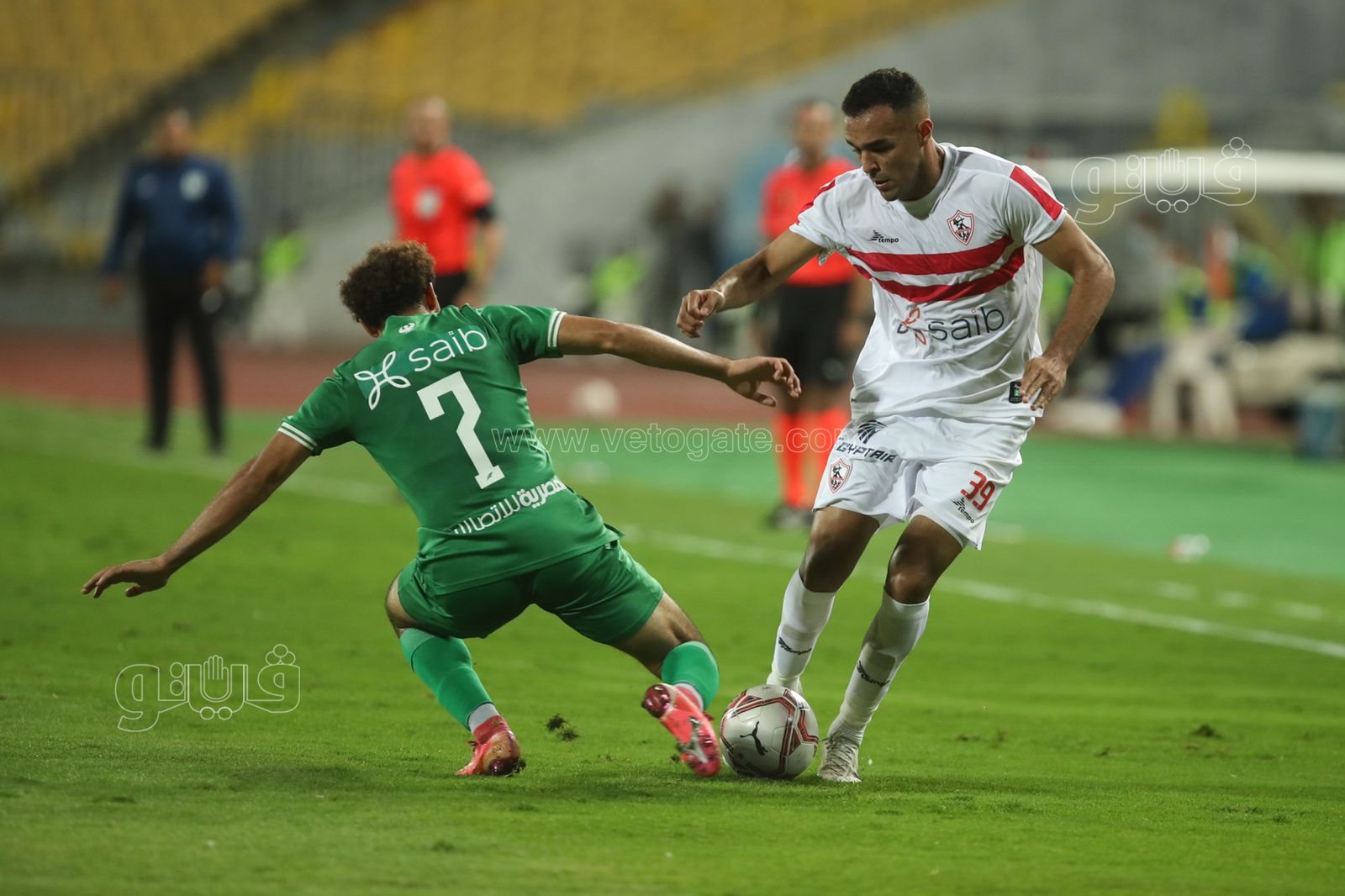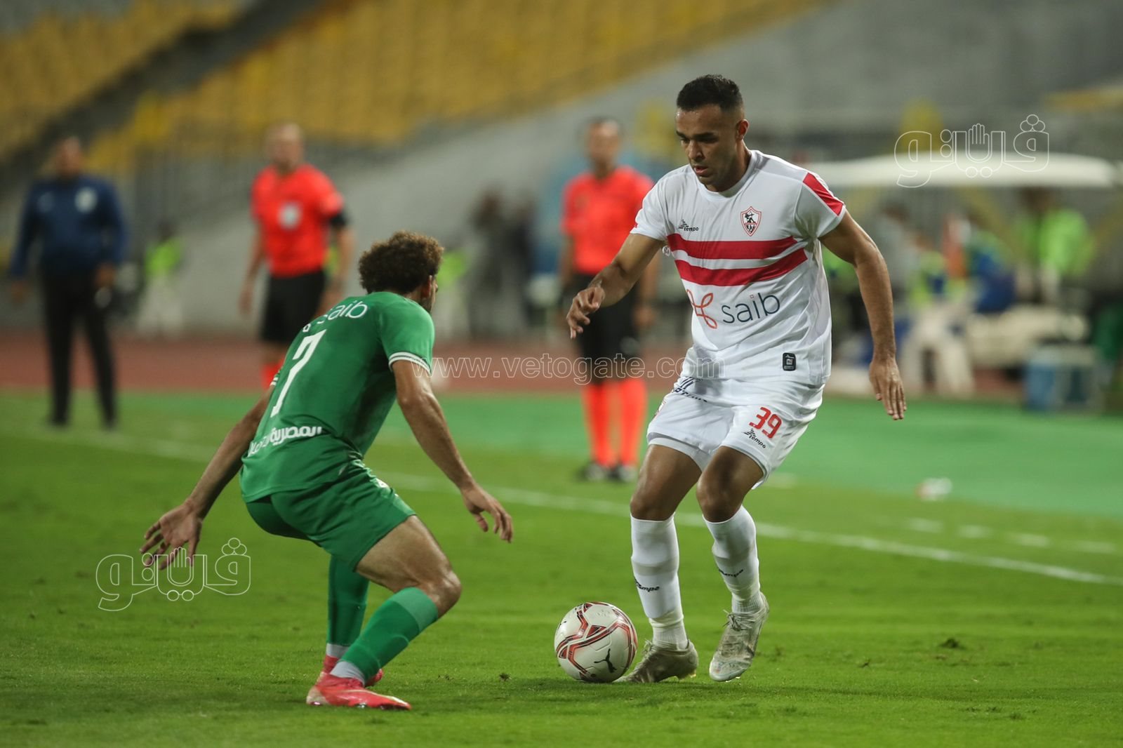 وفي الدقيقة 50 سدد أحمد سيد زيزو ضربة حرة من مكان خطير للزمالك ولكن انقذها محمود جاد حارس المصري.