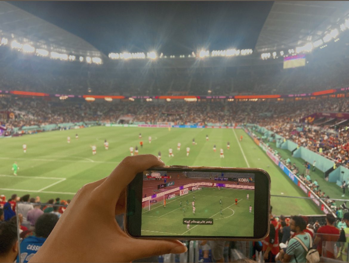 تداول نشطاء عبر موقع التواصل الاجتماعي تويتر صورة لأحد المشجعين المصريين الحاضرين في ملعب مباراة فرنسا والدنمارك في بطولة كأس العالم 2022 بقطر، وهو يتابع عبر الموبايل مباراة الزمالك والمصري في كأس مصر والتي تقام في نفس توقيت لقاء فرنسا والدنمارك، وهو ما يرجح أنه زملكاوي الهوية.