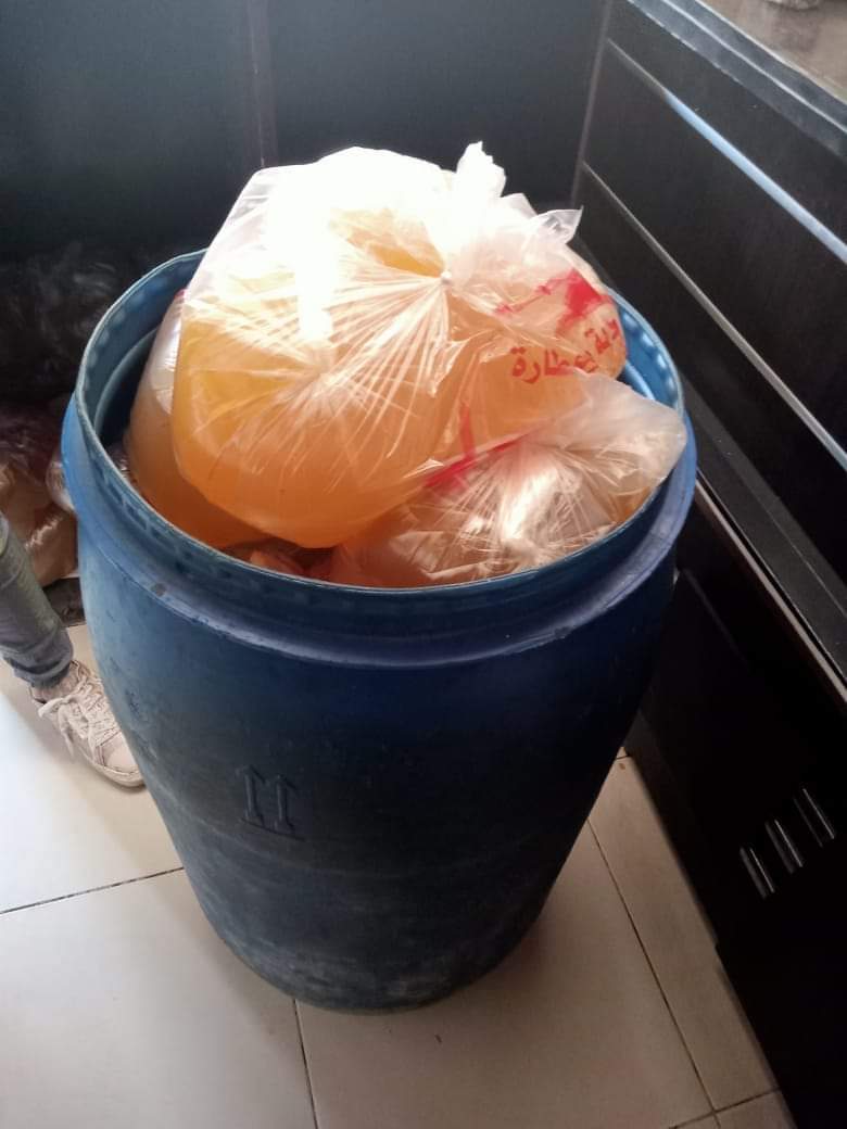 حيث تمكنت جهود مديرية التموين خلال شهر من ضبط منشاة بالحي السادس بمدينة ٦ أكتوبر تقوم بتعبئة زيوت طعام مجهوله المصدر في جراكن بلاستيكية لتوزيعها علي المحال والمطاعم وطرحها للمستهلك وبحوزته طن زيوت غير صالحه وبدون فواتير او بيانات تفيد مصدرها وقد تم التحفظ على المضبوطات واتخاذ الإجراءات القانونية.