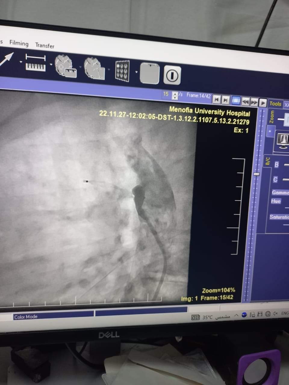 من جانبه أوضح الدكتور محمد النعمانى رئيس قسم القلب والأوعية الدموية أنه تم عمل غلق وصلة شريانية بين الشريان الرئوي والأورطى لطالبة بإحدى كليات جامعة المنوفية عن طريق القسطرة الداخلية بدلا من جراحة القلب المفتوح والتى تجرى عن طريق تخدير موضعى فقط والمريض واعى ويخرج المريض من المستشفى ف اليوم التالى للقسطرة مباشرة، مضيفا أنها تعد حالة من الحالات الصعبهةنظرا لكون الوصلة الشريانيه طويلة ويبلغ طولها حوالى ٢٧ مم.