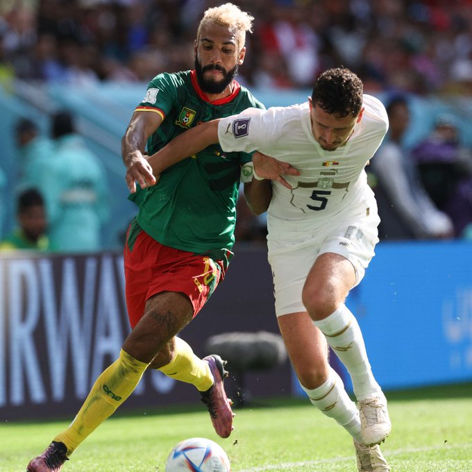 تعادل المنتخب الكاميروني مع نظيره الصربي بنتيجة 3/3 في المباراة التي جمعت المنتخبين اليوم الإثنين على ستاد الجنوب بقطر في إطار منافسات الجولة الثانية بالمجموعة السابعة في كأس العالم 2022.