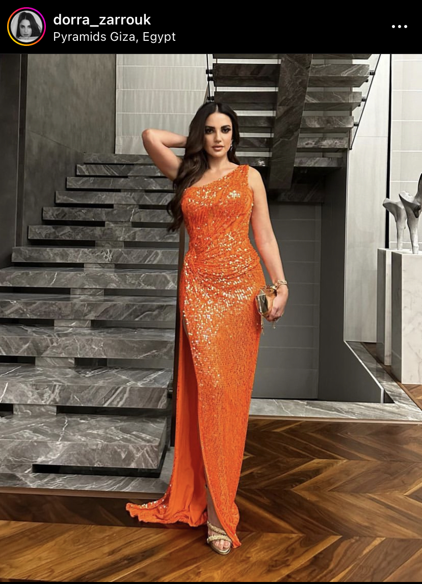 وظهرت درة بفستان برتقالي لامع خطف الأنظار، وذلك خلال تواجدها بإحدى المناسبات رفقة زوجها، حيث حصدت الصور العديد من الإعجابات والتعليقات المميزة.