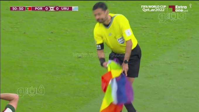 اقتحم أحد المشجعين ملعب مباراة البرتغال وأوروجواي وهو يحمل علم المثليين، في المباراة التي تقام على استاد لوسيل، في الجولة الثانية من المجموعة الثامنة في كأس العالم 2022.
