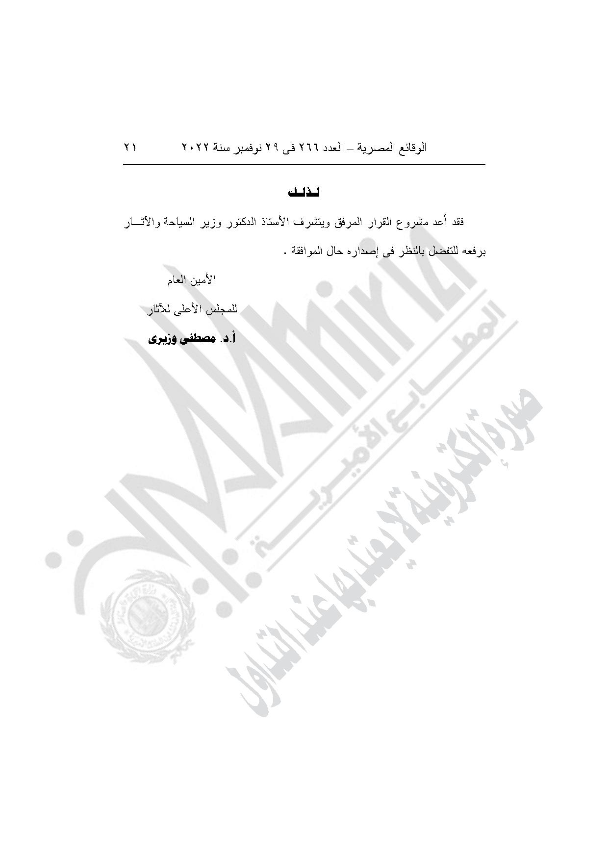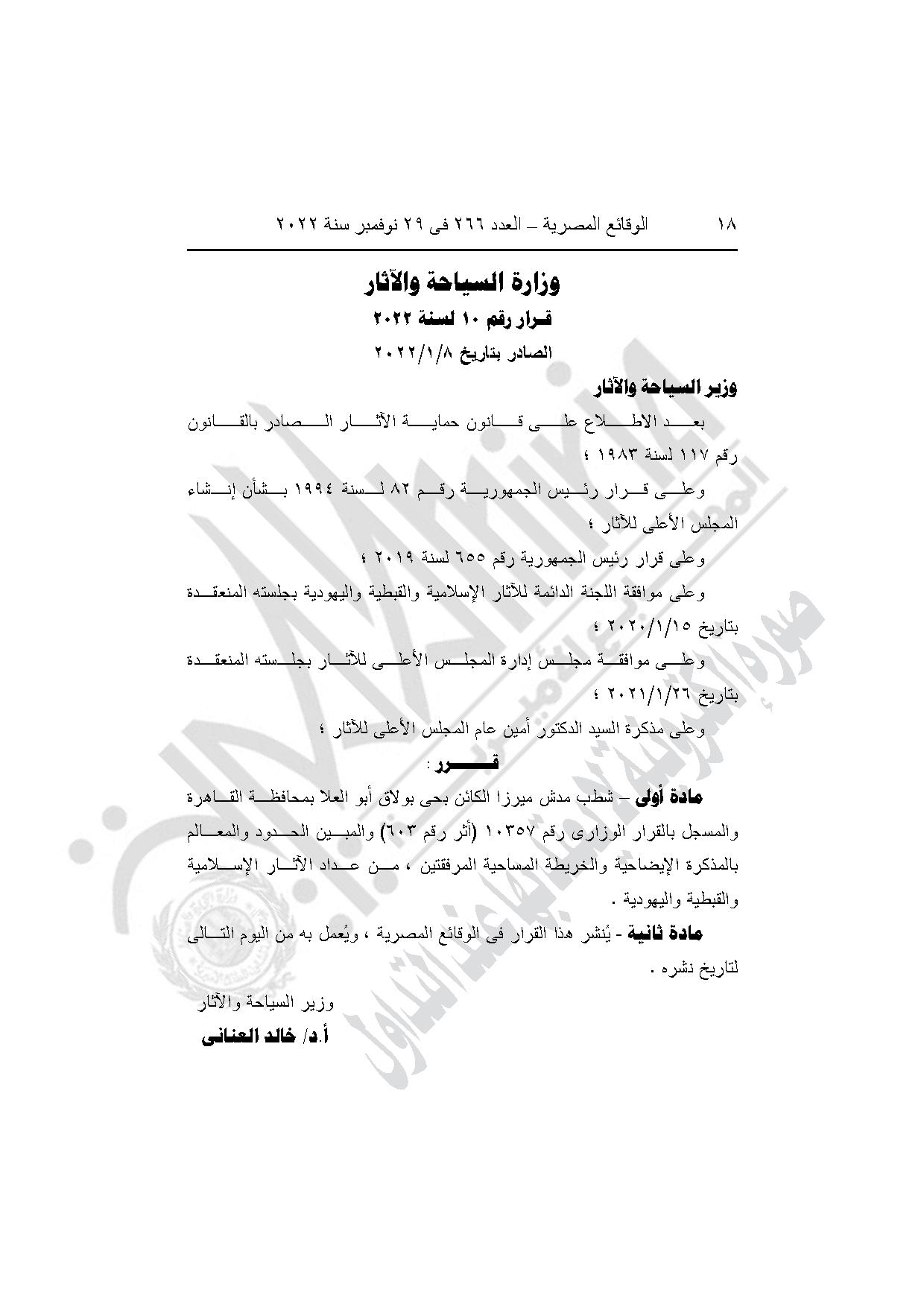 نشرت جريدة الوقائع المصرية في عددها رقم 266، الصادر في 2022، قرار وزارة السياحة والآثار رقم 10 لسنة 2022، بشأن شطب مسجد أثري بٌني في العصر العثماني ويسمى "مدش ميرزا"، الذي يوجد في حي بولاق أبو العلا بالقاهرة، من سجلات الآثار الإسلامية والقبطية واليهودية.
