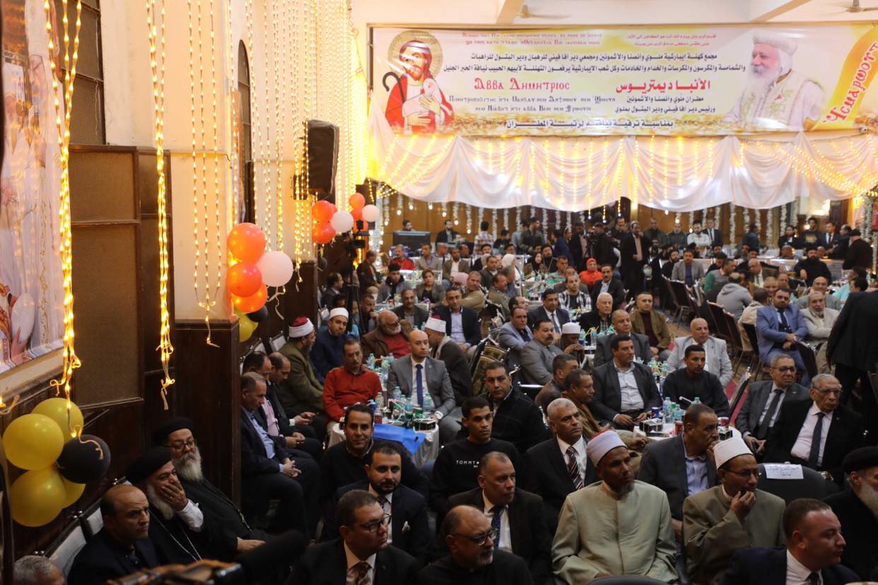 من جانبه قدم الأنبا ديمتريوس، الشكر للمحافظ، ولجميع قيادات المحافظة التنفيذية والشعبية والأمنية، على مشاركتهم الغالية في الاحتفالية وعلى روح الأخوة والمحبة، معلنا مساندته ودعمه لجهود التنمية والبناء للمحافظة.