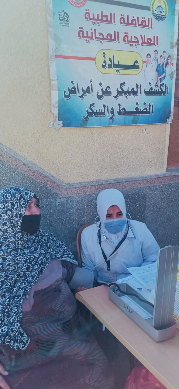 و أوضحت مديرة القوافل بمديرية الصحة أنه تم استقبال عدد ٦٢٨ مواطن بعيادة الباطنة و١٥٤ مواطنا بالجراحة و٣٧ سيدة بعيادة النساء أما عيادة تنظيم الأسرة استقبلت ٦١ سيدة بالإضافة إلى استقبال عدد ٥١٠ حالات بعيادة الأطفال وفى عيادة المسالك تم استقبال ٨٨ حالة كما استقبلت عيادة الكشف المبكر عن أمراض الضغط والسكر عدد ٧٣ حالة أما عيادة الجلدية استقبلت ١٥٤ حالة بالإضافة إلى حالة واحدة بوحدة الأشعة.