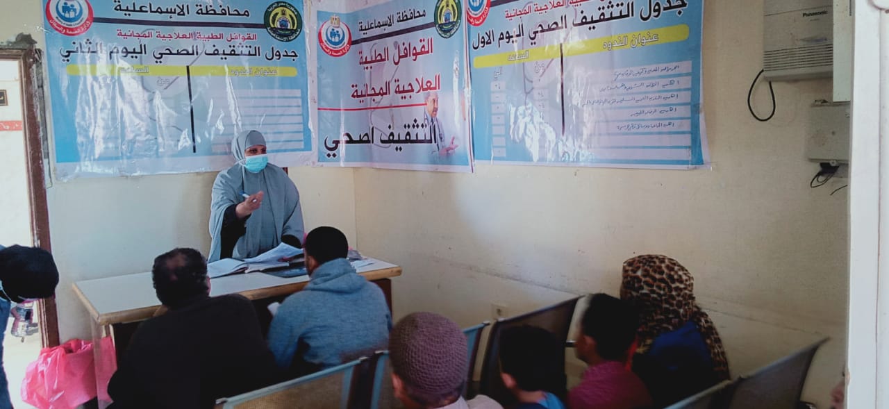 ومن جانبه أشار الدكتور علي حطب وكيل وزارة الصحة بالإسماعيلية، إلى أن القافلة تضمنت ٦ تخصصات طبية حيث شملت عيادات الأطفال والباطنة والمسالك البولية والنساء وتنظيم أسرة والجراحة، وعيادة الكشف المبكر عن أمراض الضغط والسكر ومعمل للدم وصيدلية تضم ٨٠ صنفا دوائيا بالإضافة إلى التثقيف الصحي والتوعية بأهمية تلقى لقاح كورونا والتسجيل الفوري بالإضافة إلي التوعية بأهمية التسجيل بمنظومة التأمين الصحي الشامل، لافتًا إلى أن هذه القوافل لا تقتصر على تقديم خدمات الكشف والعلاج والإحالة المجانية فحسب، بل تشمل أيضا عقد ندوات توعية للمواطنين، بهدف التوعية بخطورة الأمراض وضرورة الاهتمام بالنظافة العامة.