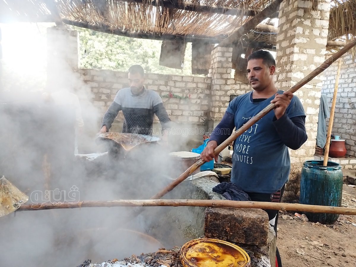 البداية يقول خالد فوزي حسين، صاحب أحد مصانع الجلاب بقرية القناوية، إننا نقوم بتصفية العسل من الشوائب ويتم وضعه على غلايات كبيرة من النحاس تصل درجة حرارتها إلى 70 درجة مئوية ويستغرق حوالي 10 إلى 15 دقيقة على النار وأثناء ذلك يتم التقليب بعصا خشبية كبيرة يطلق عليها “مدارية”.