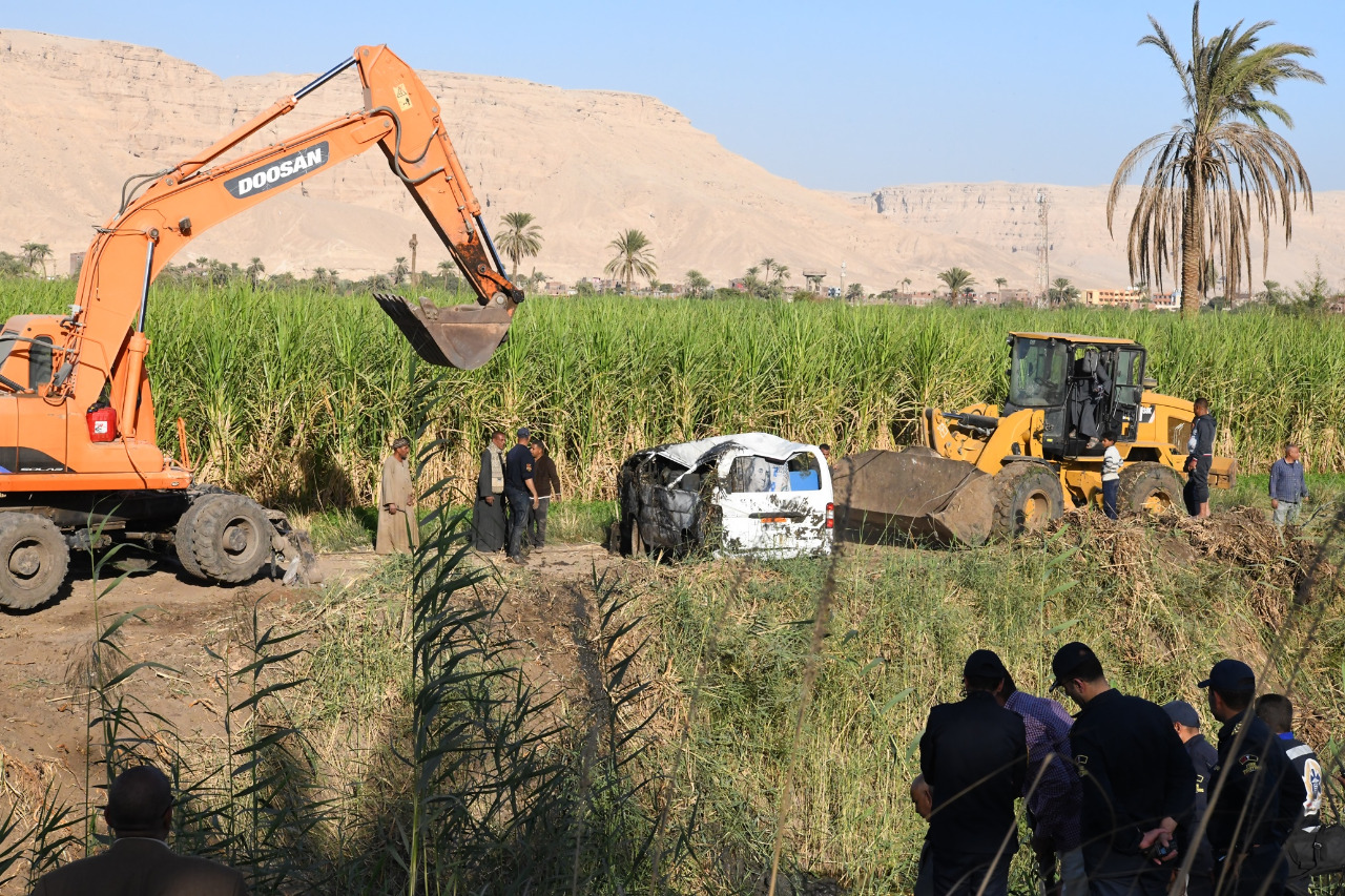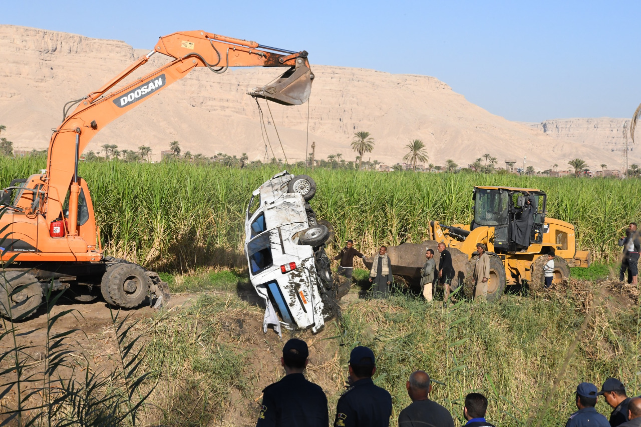 انتشال الأتوبيس الغارق من ترعة طريق الأربعين في قنا|صور