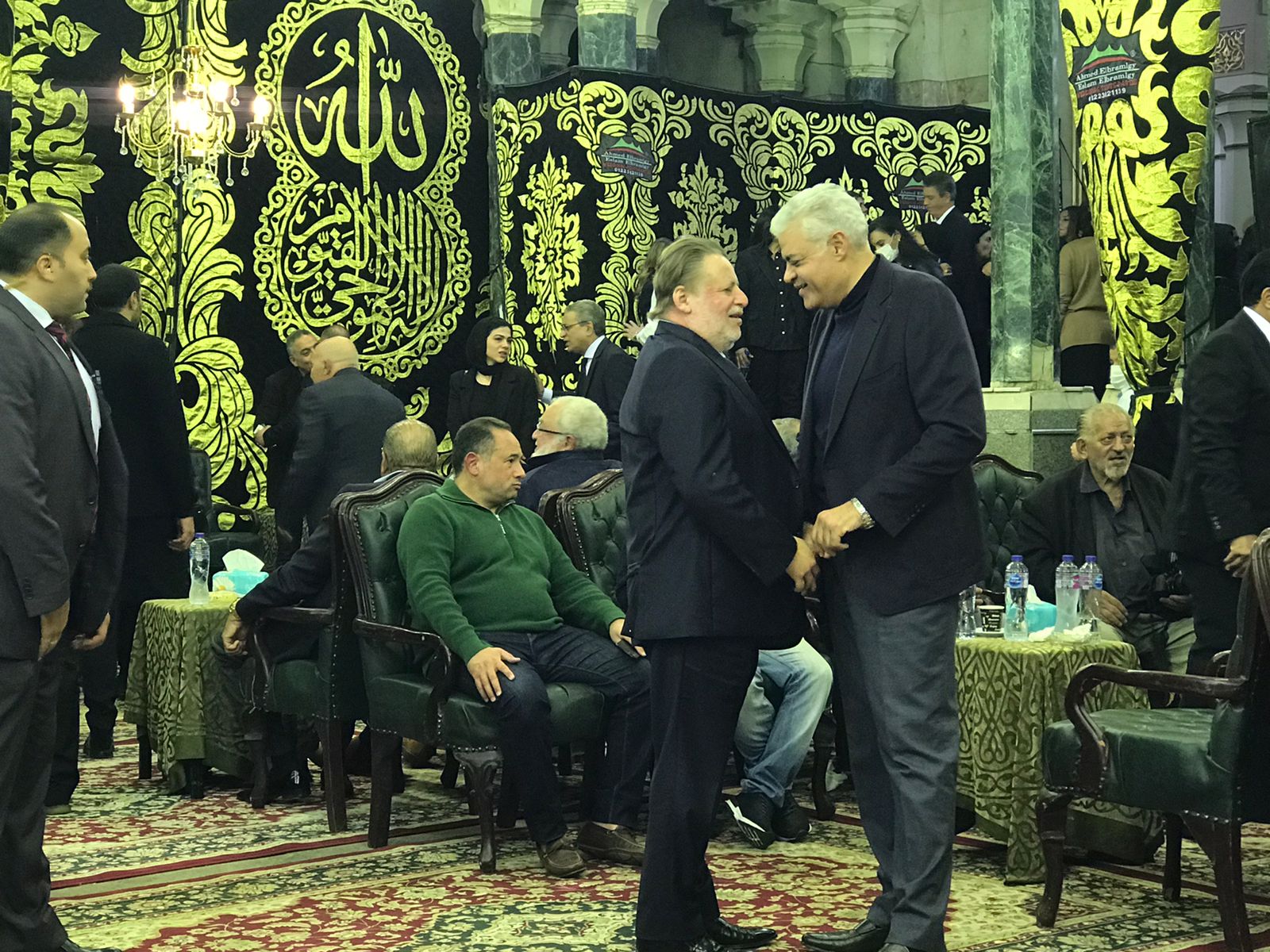 ويحضر العزاء الفنانة يسرا، والفنان أحمد حلمي وزوجته منى زكي، إلى جانب عدد من رجال الأعمال، من بينهم هشام طلعت مصطفى، وأشرف شيحة، والمهندس أحمد صبور عضو مجلس الشيوخ، وعدد من الشخصيات العامة أيضا.