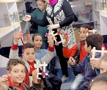 وتضمنت عمل أنشطة داخل أتوبيس المكتبة المتنقلة بالأشغال اليدوية التي تهدف إلى الحفاظ على البيئة وتدوير المخلفات وعمل أشغال للأطفال، بالإضافة إلى ورش عمل الماسكات والبرواز وغيرها.