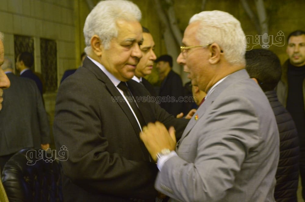 واستقبل المعزين فى القاعة القيادى الناصرى حمدين صباحى مؤسس حزب الكرامة وأسرة الفقيد الراحل.